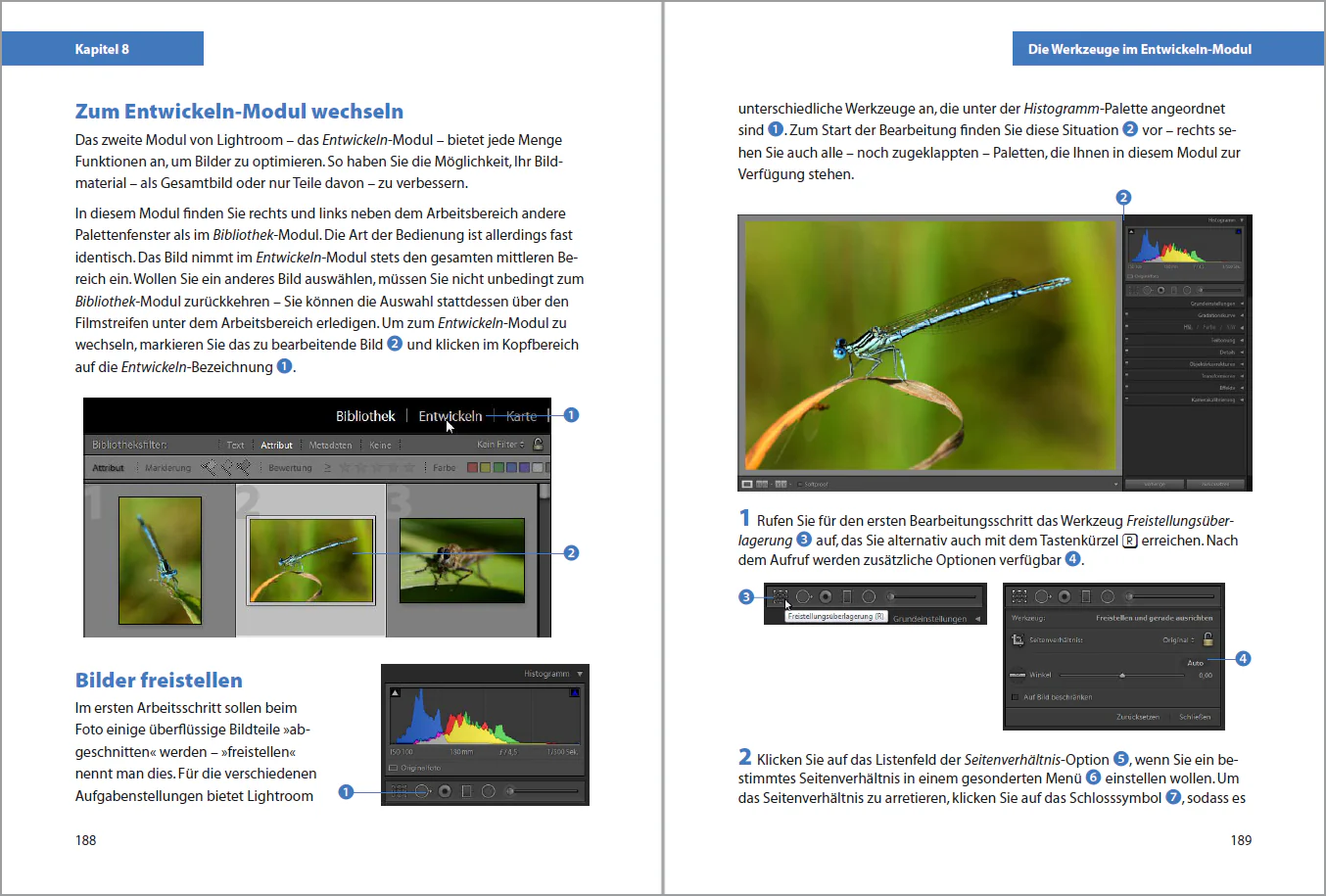 In zahlreichen Schritt-für-Schritt-Anleitungen lernen Sie den kompletten Workflow von der Strukturierung Ihres Bildbestands über die schnelle Korrektur Ihrer Aufnahmen bis zur perfekten Entwicklung Ihrer RAW-Daten kennen. Zudem bekommen Sie wertvolle Tipps zur gelungenen Präsentation Ihrer Fotoschätze.