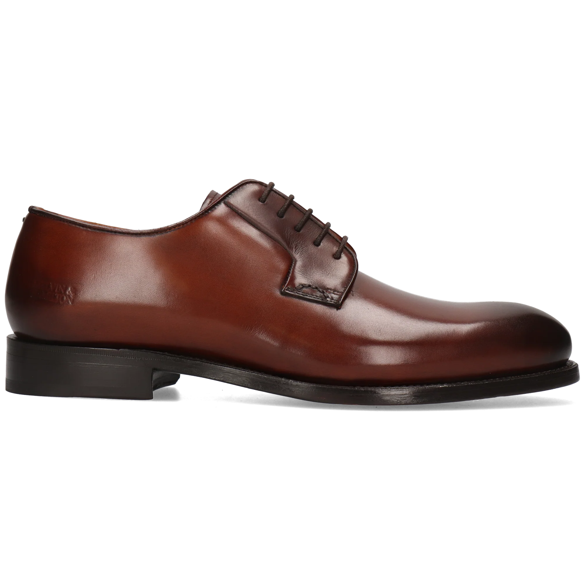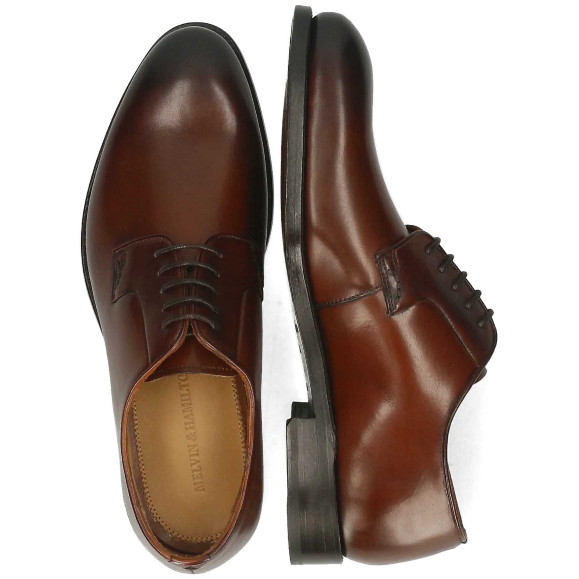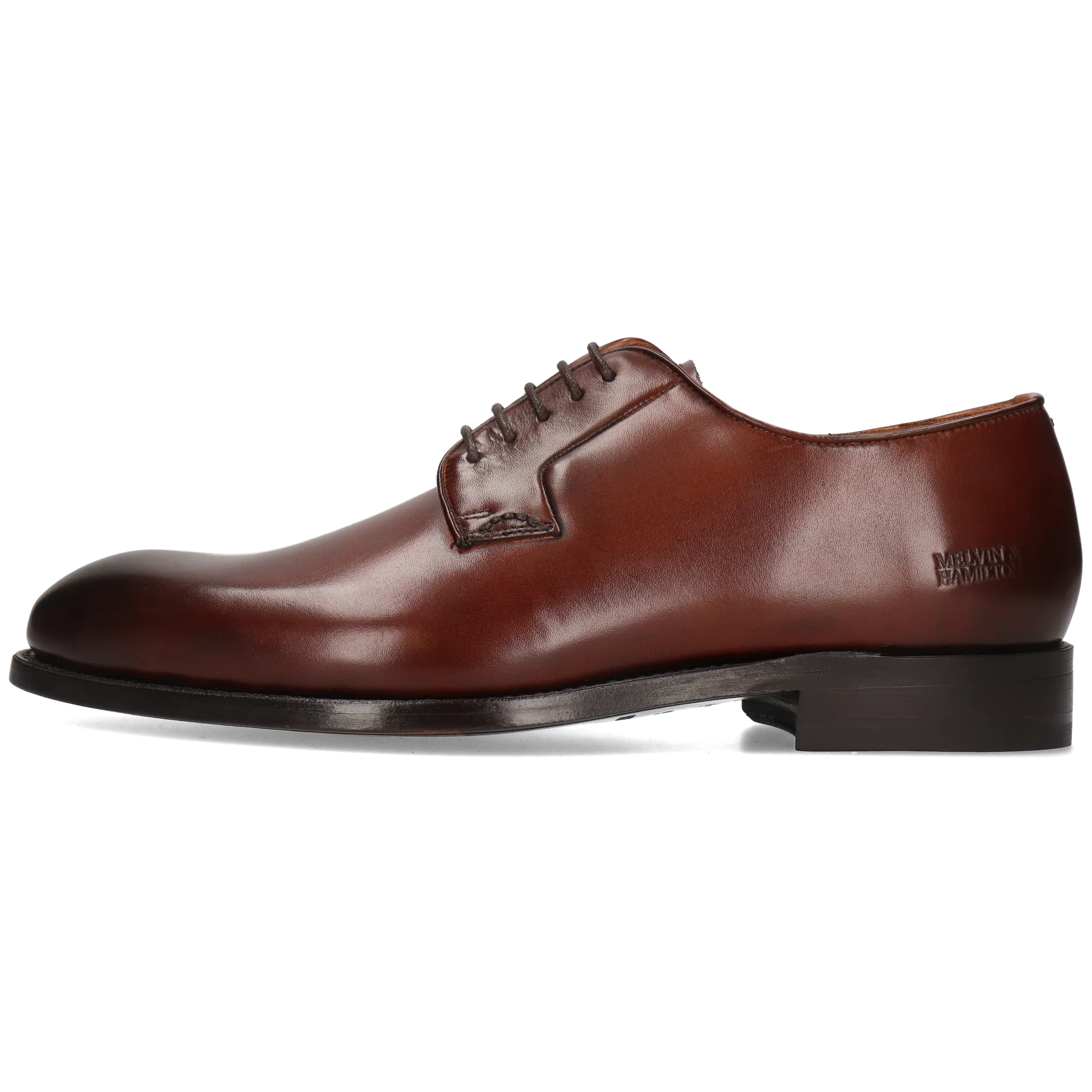Entdecke die Melvin & Hamilton Benet 1 Herren Derby Schuhe aus Kalbsleder in braun, rahmengenähte Schuhe mit der Goodyear Machart – eine traditonelle Handwerkskunst, die für Premium Qualität steht. Die hochwertige Doppelnahttechnik dieser Methode, sorgt für eine außerordentliche Langlebigkeit der Schhuhe, während sich die Schicht natürlichen Korks unter der Leder Innensohle an den Fuß anpasst und damit Tragekomfort garantiert. Durch die offene Schnürung, die rund Spitze und die Leder Sohle, sind diese Smart Shoes die perfekte Mischung aus Eleganz und Vielseitigkeit. Ob zum Business Anzug oder lässig mit einer Chino Hose getragen, diese Schuhe sind ein Must-Have für einen raffinierten und ungezwungenden Look.