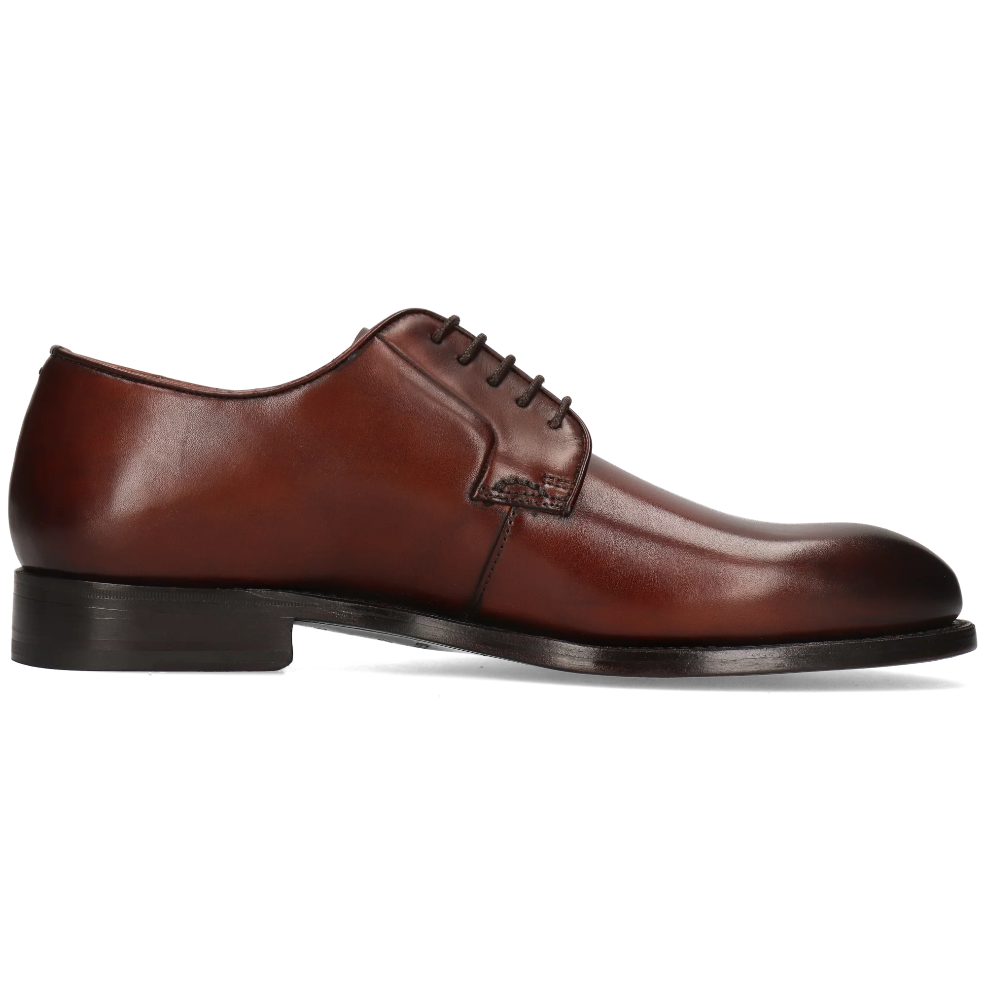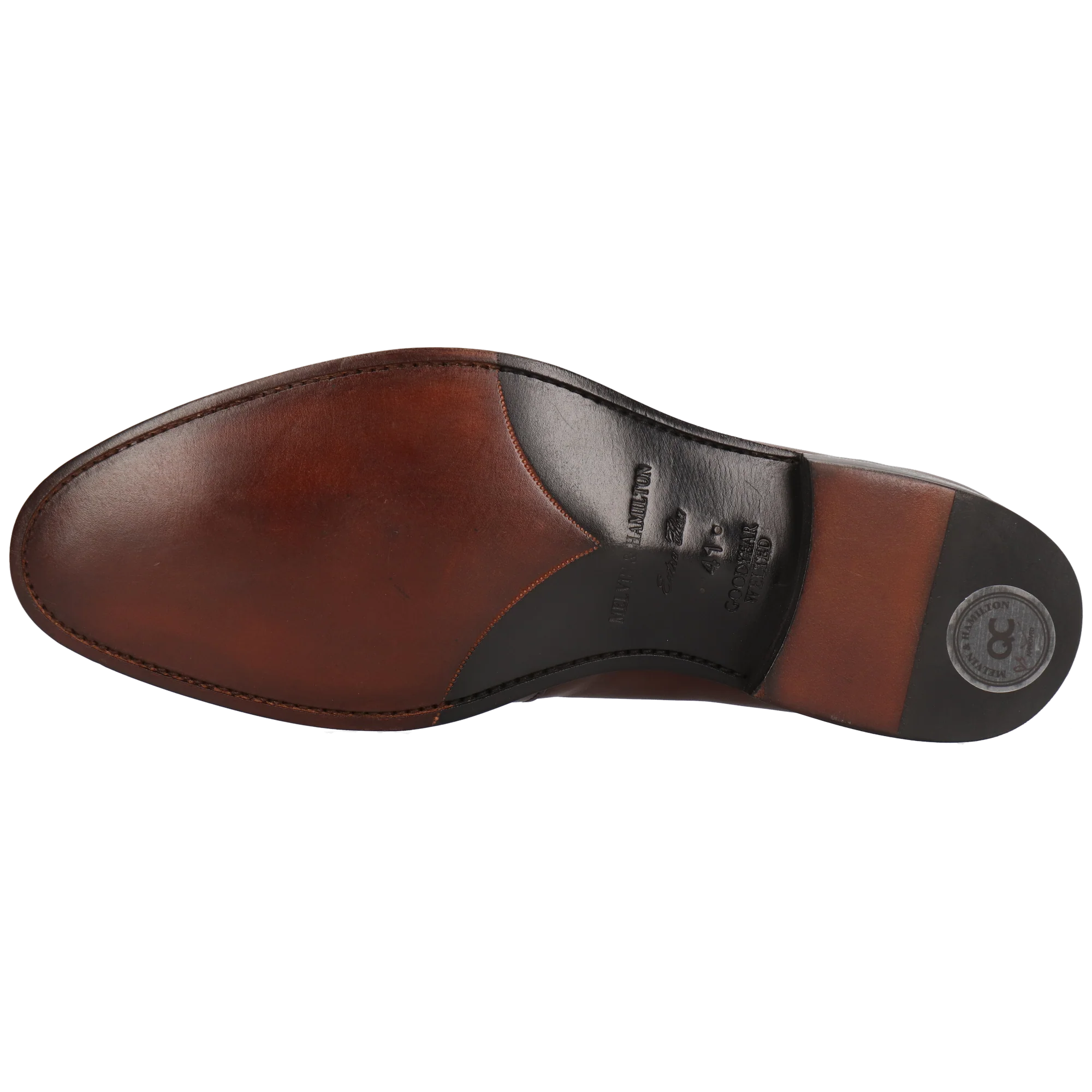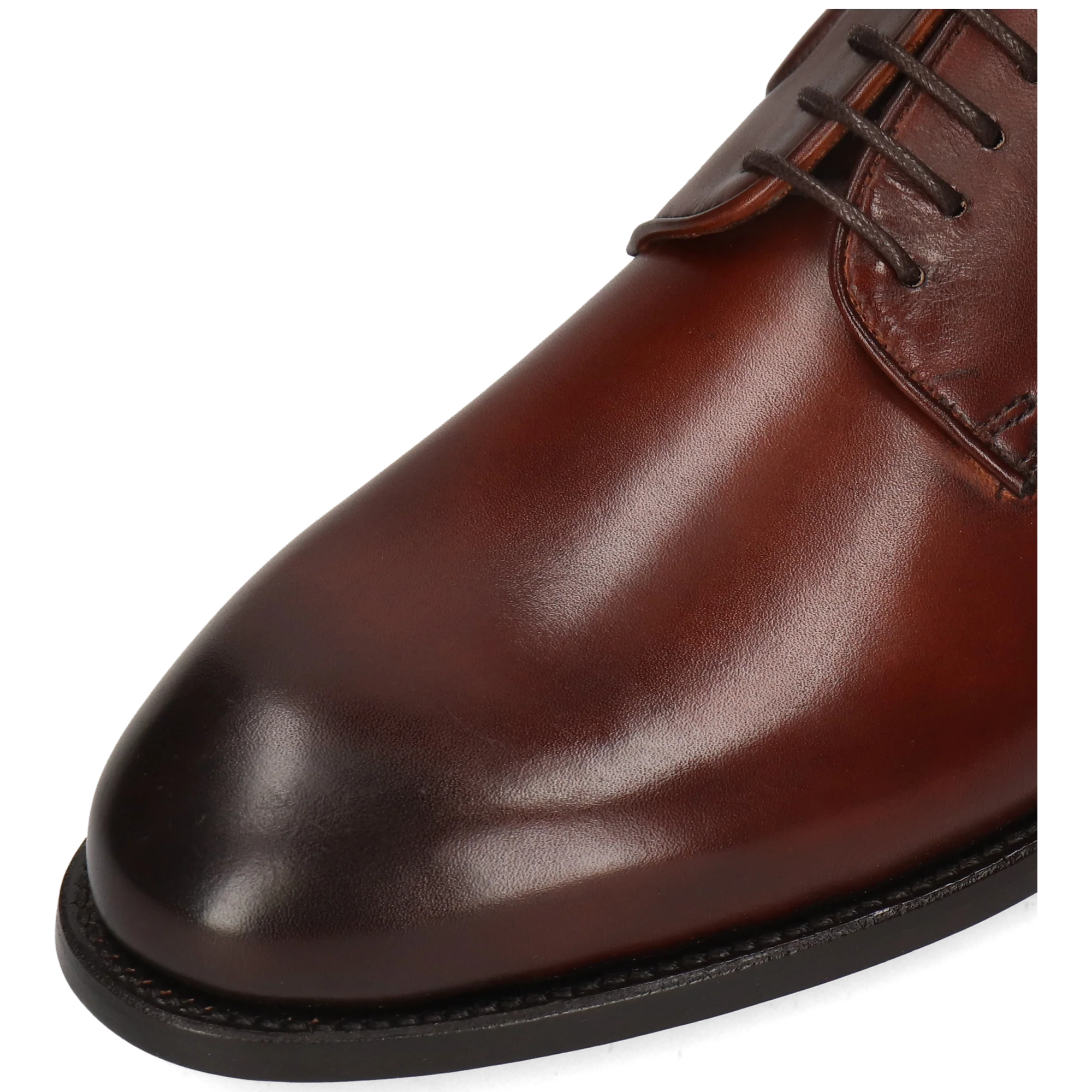 Entdecke die Melvin & Hamilton Benet 1 Herren Derby Schuhe aus Kalbsleder in braun, rahmengenähte Schuhe mit der Goodyear Machart – eine traditonelle Handwerkskunst, die für Premium Qualität steht. Die hochwertige Doppelnahttechnik dieser Methode, sorgt für eine außerordentliche Langlebigkeit der Schhuhe, während sich die Schicht natürlichen Korks unter der Leder Innensohle an den Fuß anpasst und damit Tragekomfort garantiert. Durch die offene Schnürung, die rund Spitze und die Leder Sohle, sind diese Smart Shoes die perfekte Mischung aus Eleganz und Vielseitigkeit. Ob zum Business Anzug oder lässig mit einer Chino Hose getragen, diese Schuhe sind ein Must-Have für einen raffinierten und ungezwungenden Look.