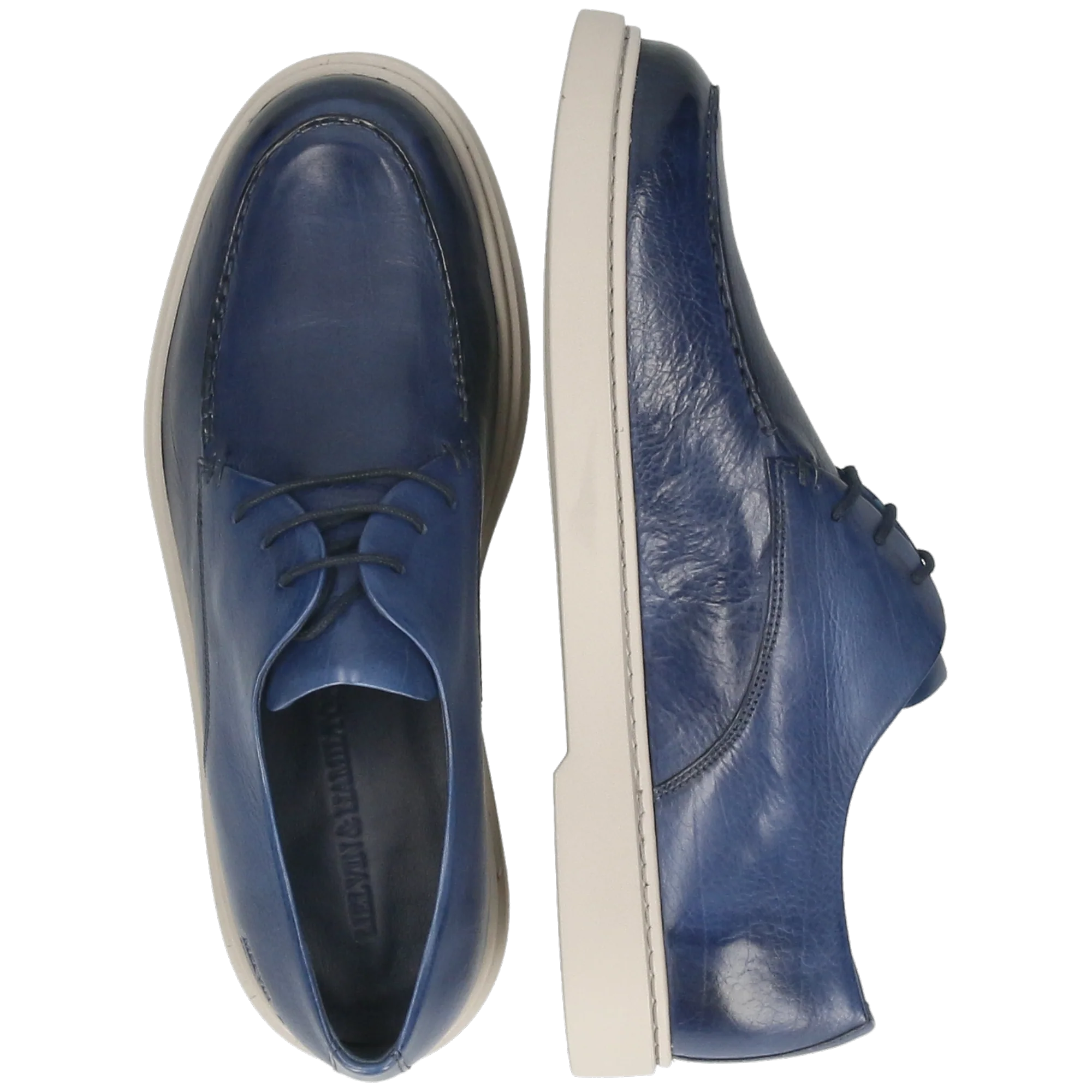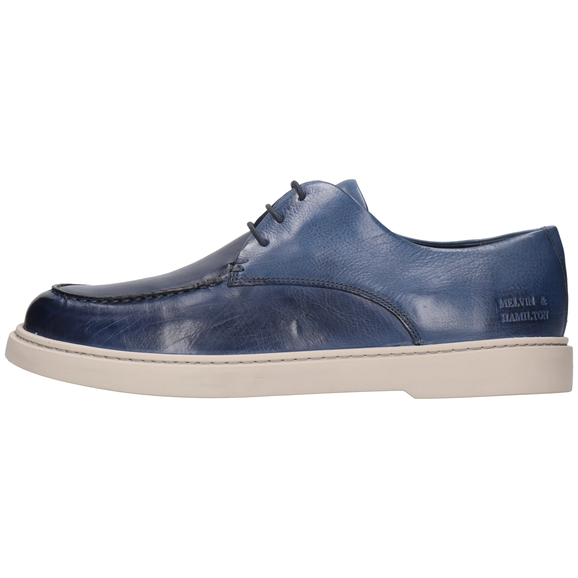 Entdecke Derbyschuhe aus Leder für Herren aus der Frühlings- und Sommer-Kollektion von Melvin & Hamilton. Klassisch geformte Schnürschuhe passen zu allen Stilen und sind ein Muss für jede Garderobe. Mit diesem Modell Bruno 2 erhälst du hochwertige Qualität und bestes Design! Setze ein Fashion-Statement mit diesem Paar Lederderbys in blau, welche die wärmeren Tage noch ein bisschen bunter und schöner machen werden! Ein bisschen Originalität schadet nie, vor allem nicht bei diesen Schnürschuhen in trendigen Farben und Mustern. Natürlich alles in gewohnter Melvin & Hamilton-Qualität!