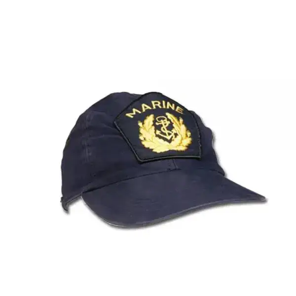 Marine Bordmütze mit Bestickung auf der Vorderseite. – hohe Form – Verstellband auf der Rückseite zur individuellen Größenanpassung – Belüftungsösen
