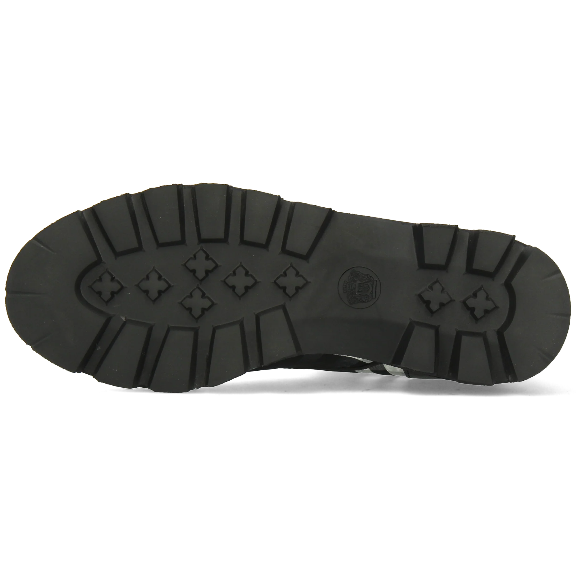 Melvin & Hamilton präsentiert seine Herbst/Winter-Kollektion von Damenstiefeln. Während der ganzen Saison werden sie deine Beine auf elegante Weise verlängern. Entdecke unser Ledermodell Dakota 12, seinen Charakter und wie man es trägt. Um Dich durch die Wintersaison zu begleiten, werden diese Damen Lederstiefel schwarz alle Blicke auf sich ziehen, dank ihrer warmen Farben und trendigen Muster – genug, um das umgebende Grau aufzuhellen. Trau Dich ruhig, Originalität zu zeigen.