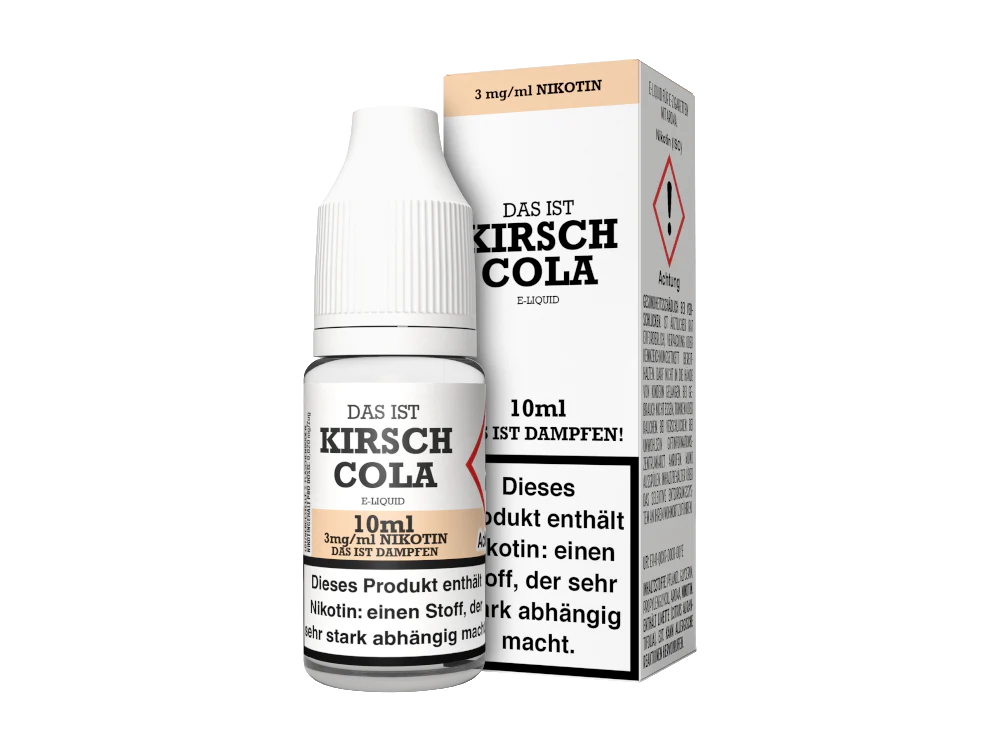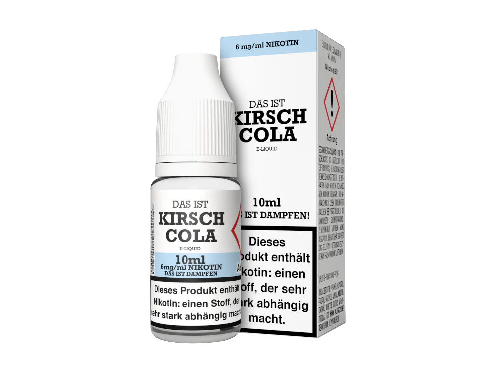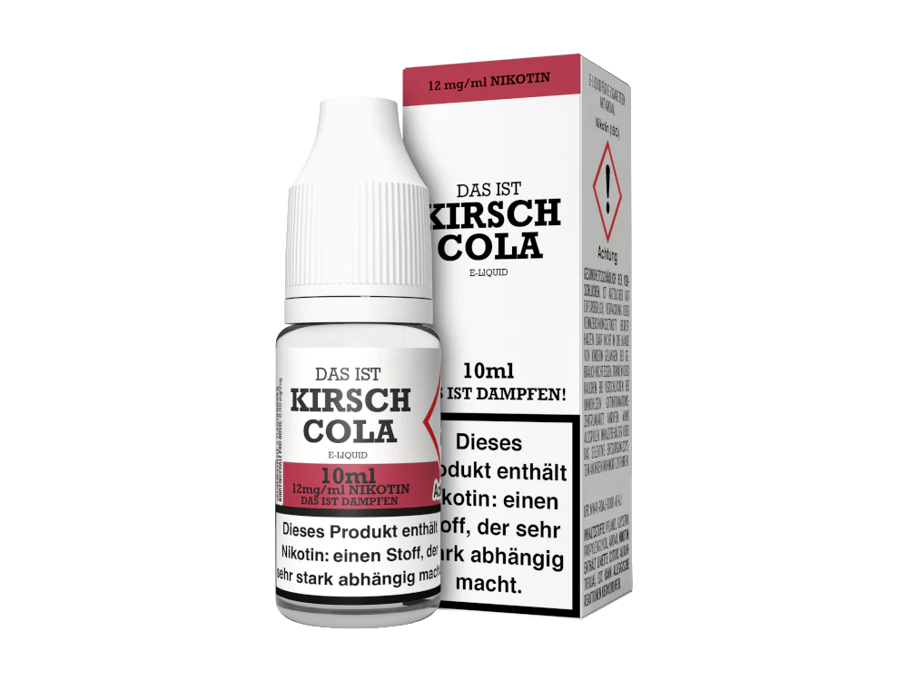 Das Kirsch Cola e-Liquid ist ein Liquid der Marke Das ist Dampfen. In Kombination mit Ihrer E-Zigarette schmeckt das Liquid nach Cola und Kirschen. Das Liquid befindet sich mit 10 ml vorgefüllt in einer 10 ml Liquidflasche. Das Liquid können Sie in den drei Nikotinstärken 3 mg/ml, 6 mg/ml und 12 mg/ml erwerben. Es steht aber auch eine nikotinfreie Variante zur Wahl.