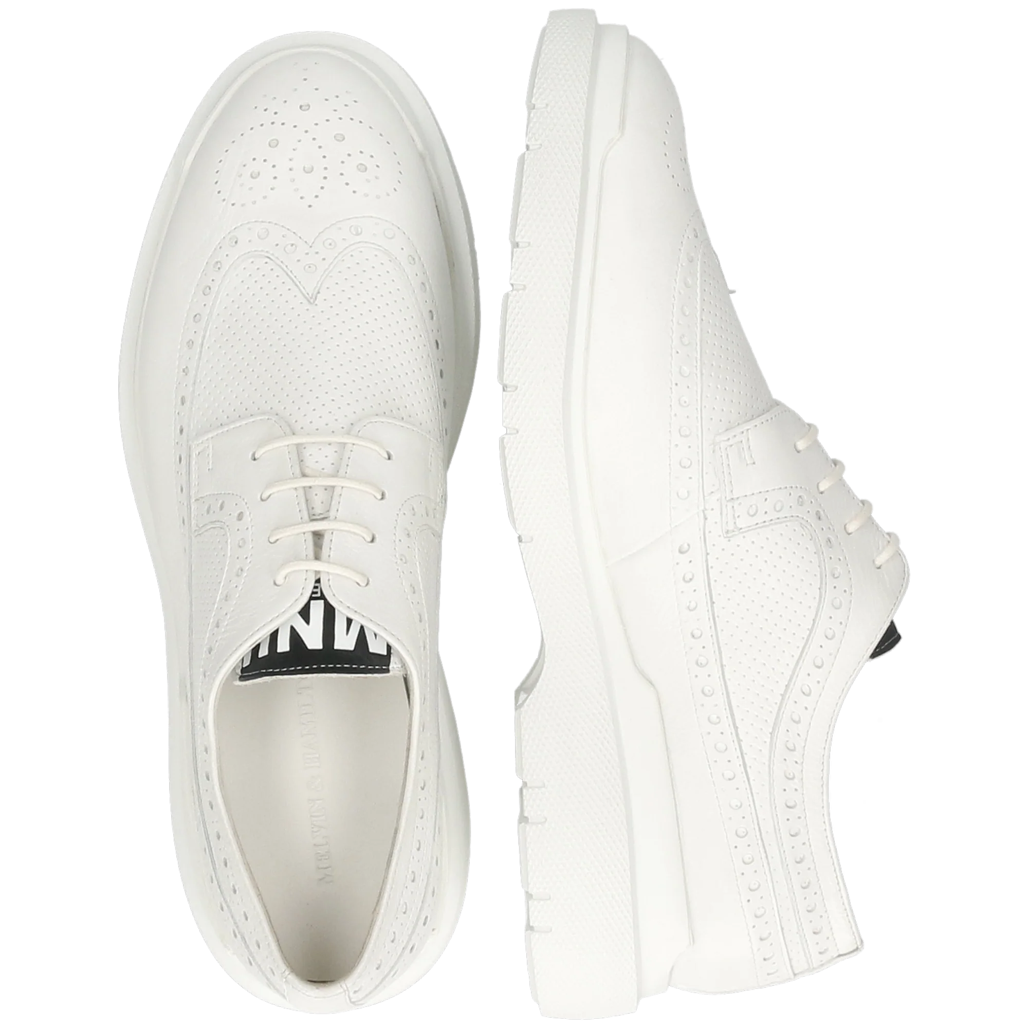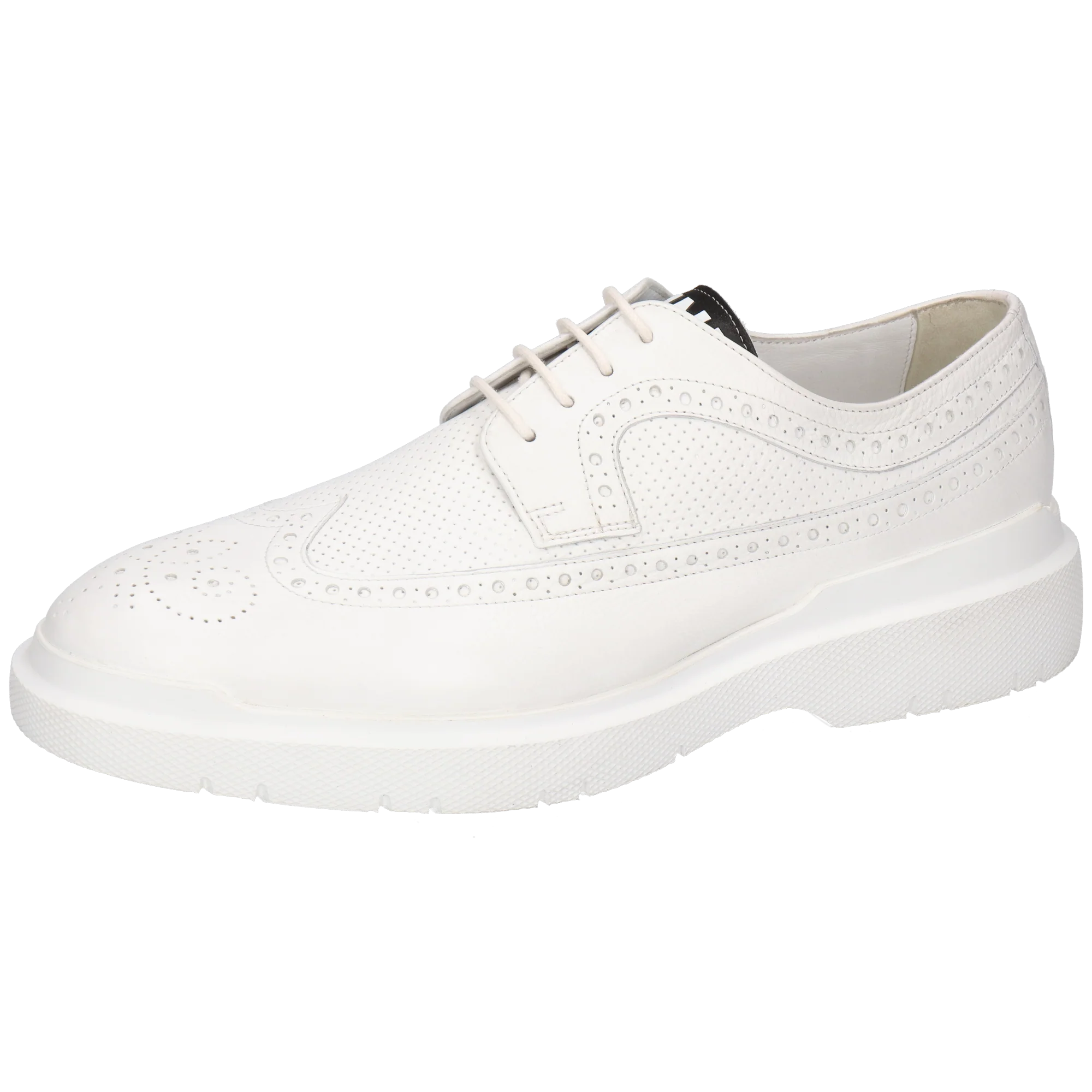 Entdecke nun unsere Leder-Derbys für Herren, aus der neuen Frühlings- und Sommer-Kollektion von Melvin & Hamilton. Die klassisch geformten Schnürschuhe passen zu allen Stilen und sind ein Muss für jede Garderobe. Mit diesem Modell Denison 1 erhälst du hochwertige Qualiät und bestes Design! Setzte ein Fashion-Statement mit diesem Paar Derbys in Weiss gefertigt aus Kuhleder, welche die wärmeren Tage noch ein bisschen bunter und schöner machen werden! Ein bisschen Originalität schadet nie, vor allem nicht bei diesen Schnürschuhen in trendigen Farben und Mustern, dessen Design zudem von einer Sohle aus Gummi in weiß unterstrichen wird. Natürlich alles in gewohnter Melvin & Hamilton-Qualität!