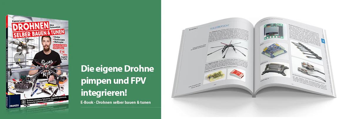 Der Autor Patrick Leiner erklärt Ihnen, wie die Einzelkomponenten für den Bau einer Drohne ausgewählt werden und worauf Sie beim Bau, Einstellen, Fliegen und Optimieren achten sollten.