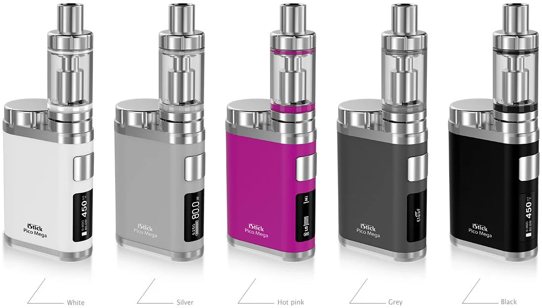 Eleaf iStick Pico Mega 80W Starterkit Starterset kommt mit einem Melo III Atomizer Verdampfer und einem neuen Smart-Modus. Angetrieben durch einen einzigen austauschbaren 18650 oder 26650 Akku Ihrer Wahl (Akku nicht im Lieferumfang) mit einer Wattleistung von 80W, die Ihnen ein tolles Vaping-Erlebnis bietet. Außerdem enthält der Pico Mega 3 Coil – Verdampferköpfe, den brandneuen Edelstahl 316L NotchCoilTM (EC NC 0,25 Ohm Verdampferkopf) mit großer Dampfproduktion und gutem Geschmack. Kommt mit 5 Farben: schwarz, silber, Rosa, weiß, grau.