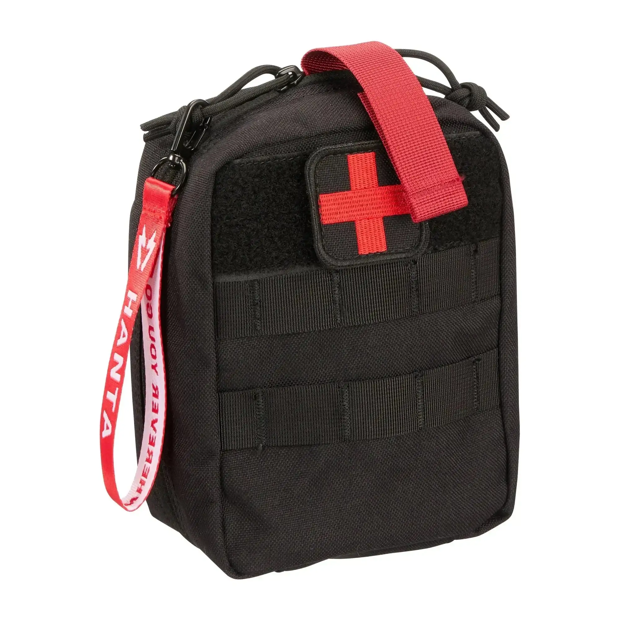 Die Hanta Erste Hilfe Pouch First Aid verfügt über Gummibänder zum sicheren Verstauen von Verbänden, Pflastern, Kompressen und anderem Zubehör. Mit dem roten Band zur Identifikation kannst Du Dein Erste Hilfe-Set auch in Notsituationen schnell finden. Das Rote Kreuz-Patch auf der Vorderseite dient zur Erkennung und ermöglicht es anderen, im Notfall zu helfen.