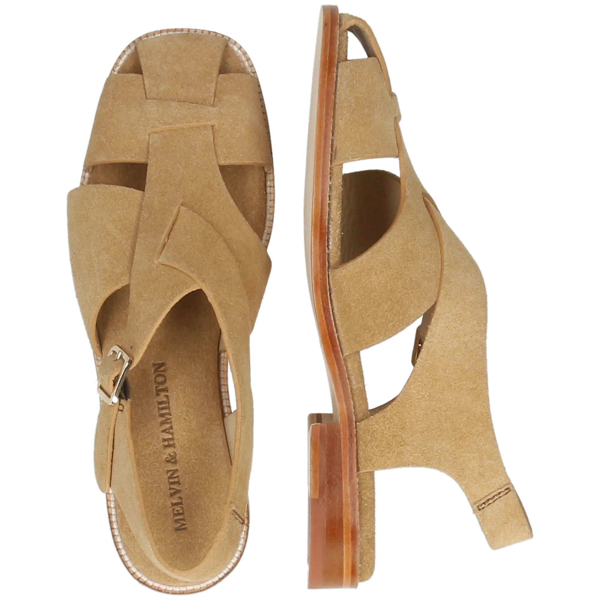 Die neuen Damen-Sandalen aus unserer Frühling-Sommer-Kollektion sind endlich da! Ob mit flachen Absätzen, Plateau oder Keilabsätzen, unsere farbenfrohen und eleganten Sandalen dürfen für die sonnigen Tage der Saison in keinem Schuhschrank fehlen. Entdecke die Ledersandalen Everly 13 für Damen von Melvin & Hamilton. Verbringen den ganzen Tag problemlos barfuß, mit unseren bequemen und stylischen Sandalen aus Wildleder in Braun! Dank ihrer federleichten Verarbeitung und ihres trendigen Designs mit einer Sohle gefertigt aus Leder in beige, wirst du bald nicht mehr auf sie verzichten wollen.