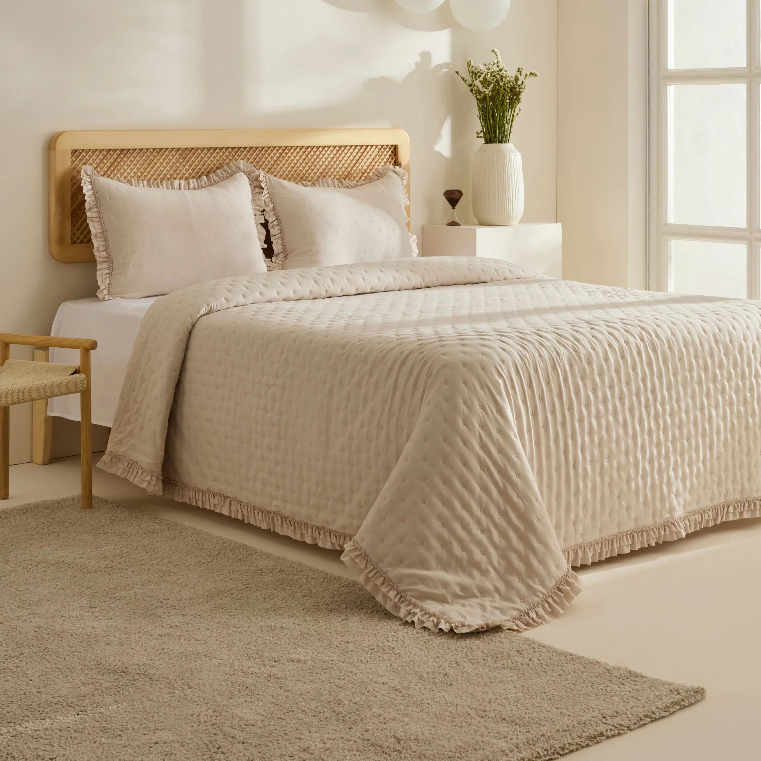 Fiona Bettüberwurf-Set Beige 230×240 Cm + 2 (50×70 Cm)