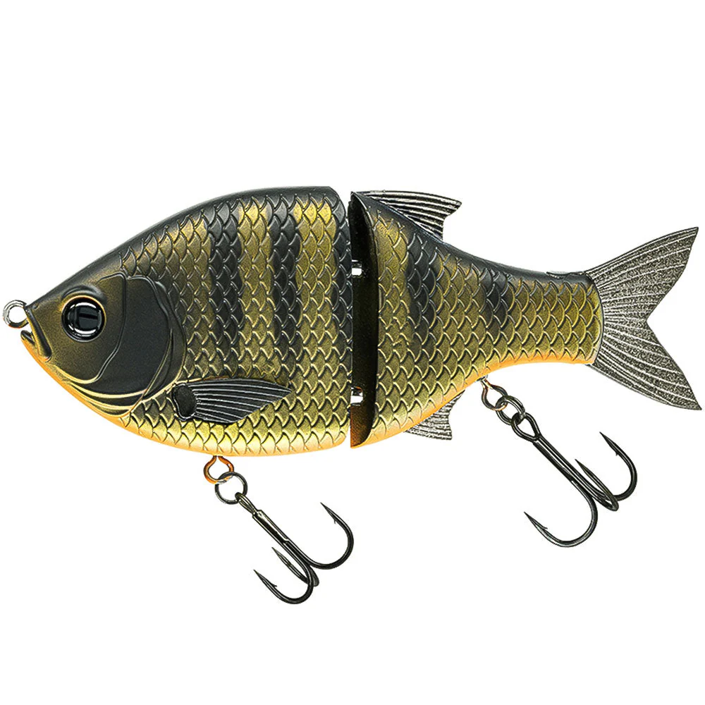 Der Molix Glide Bait 140 ist kein reiner Glidebait, wie man anhand des Namen vermuten könnte. Du entscheidest über die Führung, wie dieser Köder läuft. Linear eingekurbelt zeigt er das Laufverhalten eines Swimbaits mit ausladenden S-Kurven. Der zweigeteilte Körper unterstützt jedoch nicht nur den S-Lauf, sondern auch die unberechenbare Gliding Action mit Drehungen von bis zu 180 Grad. Optimalerweise twitchst du den Glide Bait 140 nur sanft mit der Rute oder über eine nicht zu schnelle Baitcaster-Rolle. Egal wie geführt, überzeugt er mit realistischer Optik und Verhalten, sowohl bei Aktion als auch in Pausen. Bei jedem Führungsstil flankt er verführerisch, was durch die hochrückige Form besonders intensiv unter Wasser auffällt und jeden Raubfisch provoziert.