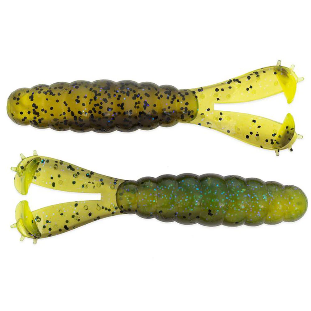 Die neuen Köder der Z-Man GOAT-Serie sind aus dem bewährten superflexible ElaZtech-Material gefertigt und spielen daher bereits bei geringsten Geschwindigkeiten. Sie verfügen über zwei Action-Paddles, die sowohl Krebsscheren, wie auch Flossen nachahmen können und über eine sehr dünne Haut mit dem Körper verbunden sind. So geraten sie besonders leicht in Bewegung.