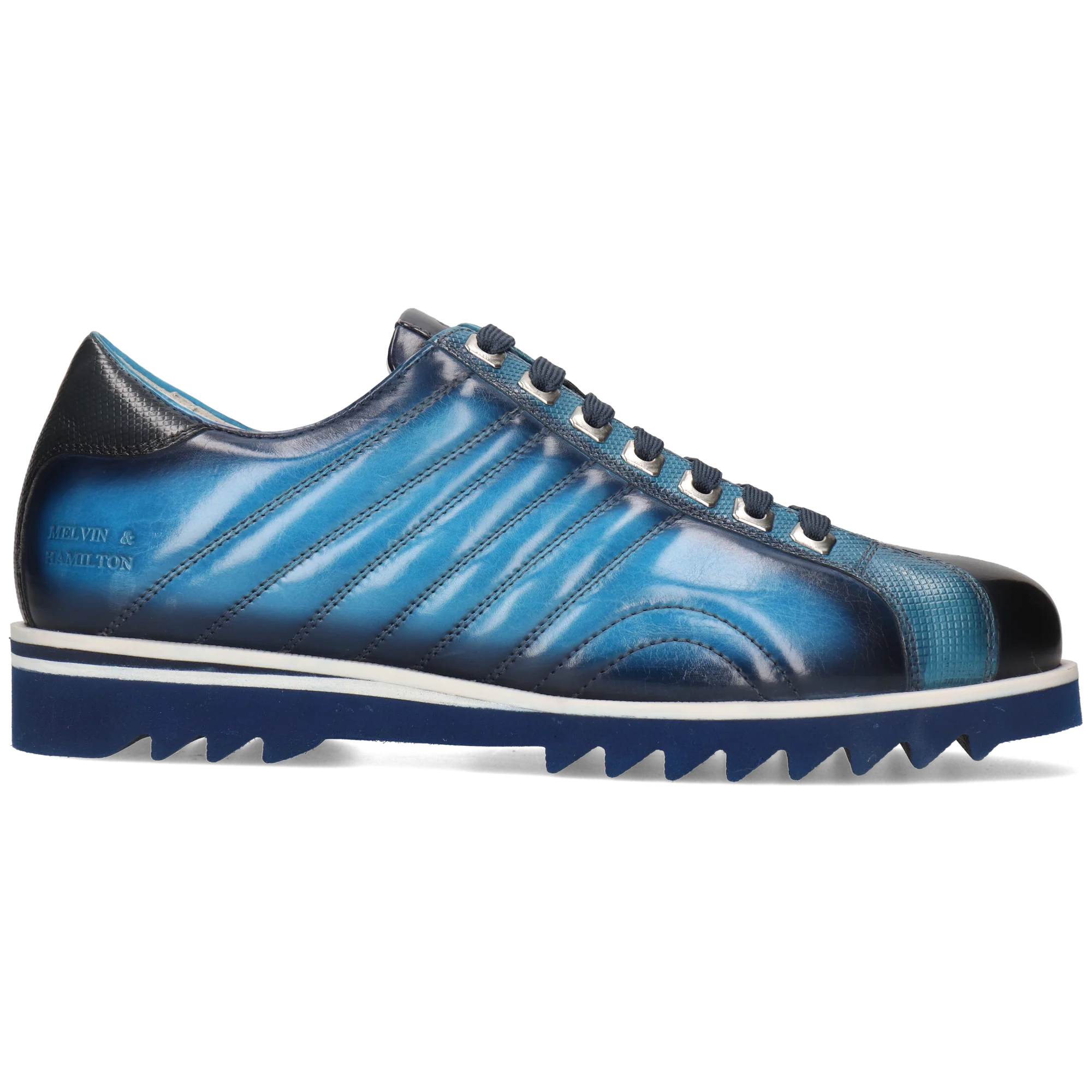 Entdecke Leder-Sneakers für Herren aus der Frühlings- und Sommer-Kollektion von Melvin & Hamilton. Unverzichtbar in jedem Schuhschrank, versprechen unsere Sneaker angenehmen Komfort in jeder Situation! Mit diesem trendigen Modell Hadrian 2 bist Du immer bestens gekleidet. Wie auf Wolken gehen – das versprechen die Sneaker von Melvin & Hamilton! Unsere innovativen und trendigen Herrenschuhe in Multi ermöglichen durch ihre Beschaffenheit aus Kuhleder bei der Arbeit oder auf Ausflügen immer eine gewisse Bequemlichkeit und Leichtigkeit. Sie werden in diesem Frühjahr und Sommer Deine liebsten Begleiter sein!