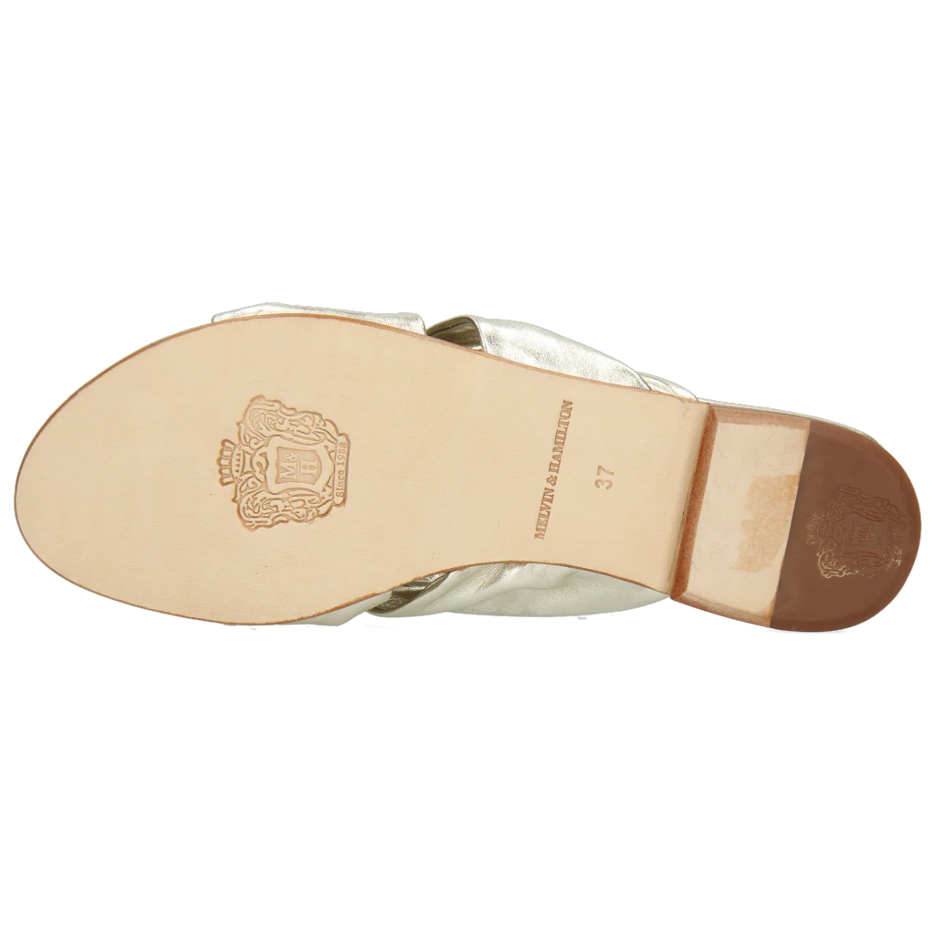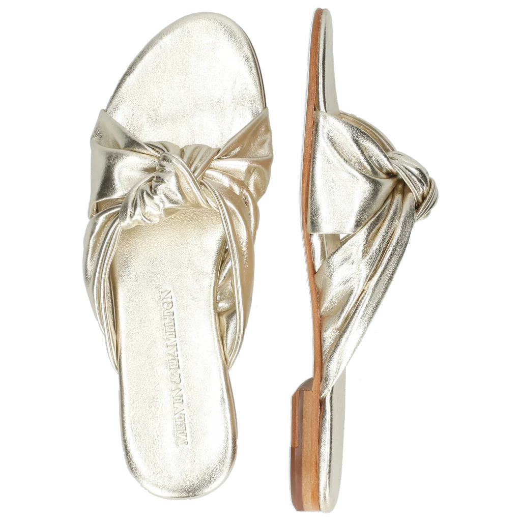 Die neuen Damen-Pantoletten aus unserer Frühjahrs- und Sommerkollektion sind endlich da! Unsere Pantoletten sind eine elegante Option für die heißen Tage der Saison – ob offen oder geschlossen. Entdecke unsere Lederpantoletten Hanna 63 von Melvin & Hamilton. Pantoletten gehörten zur Ausstattung jeder Fashionista, vor allem in der warmen Jahreszeit! Und erst recht, wenn das Design so trendy ist wie dieses Paar aus Leder in golden. Moderne, warme Farben für das Frühjahr und trendige Muster – die perfekte Kombination, um sich von der Masse abzuheben!