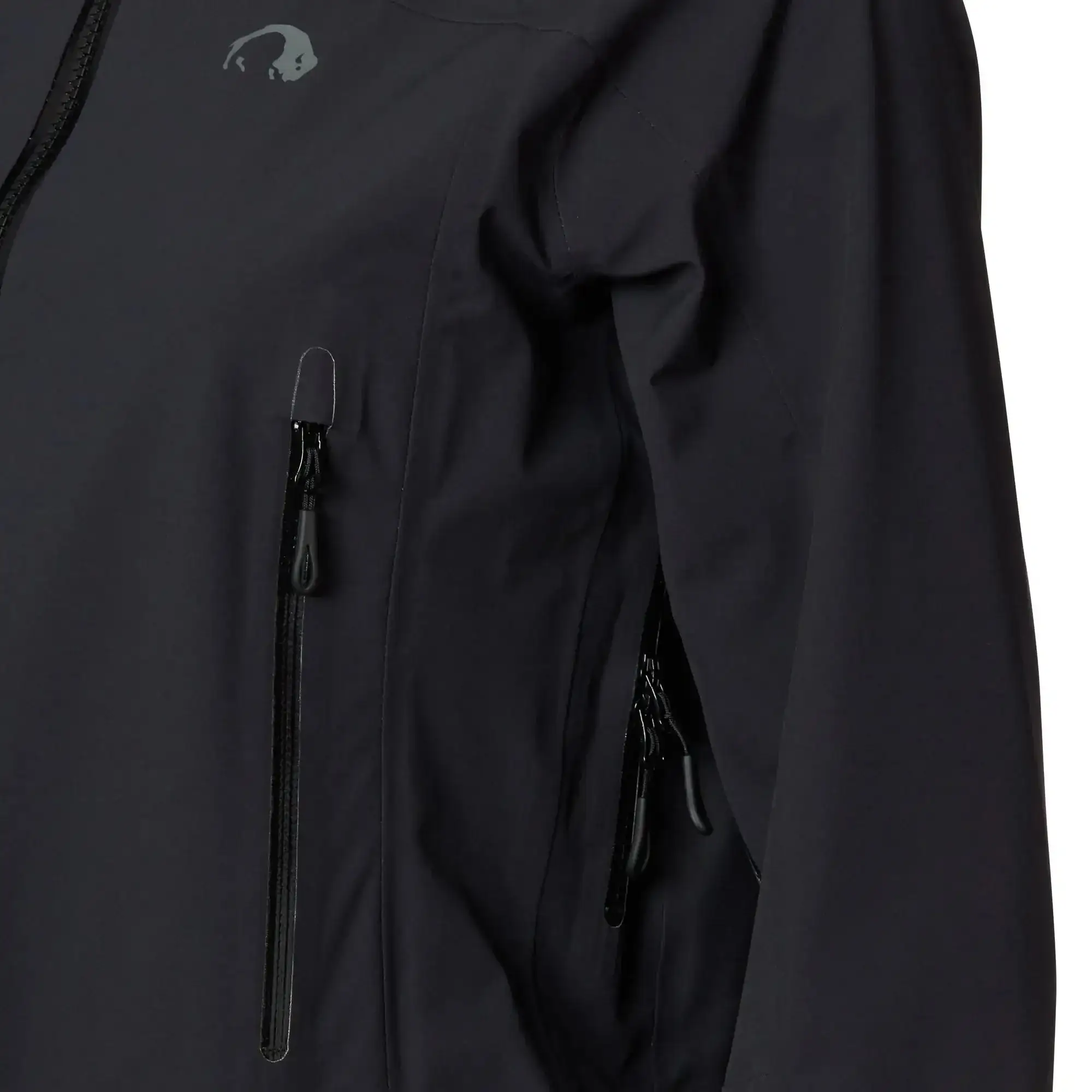 – Wasserabweisender Zweiwegereißverschluss mit unterlegter Blende, im Thermofusionsverfahren eingesetzt