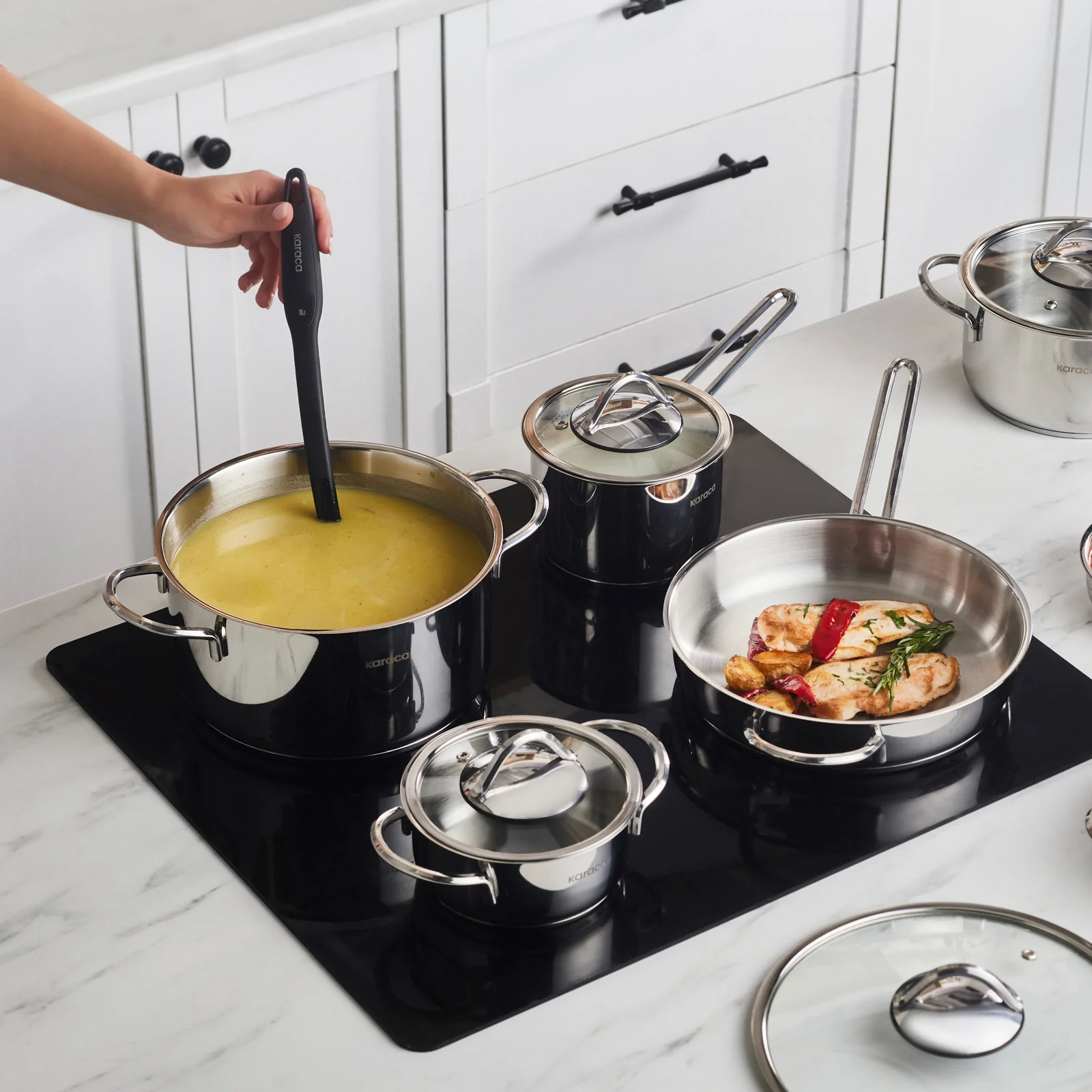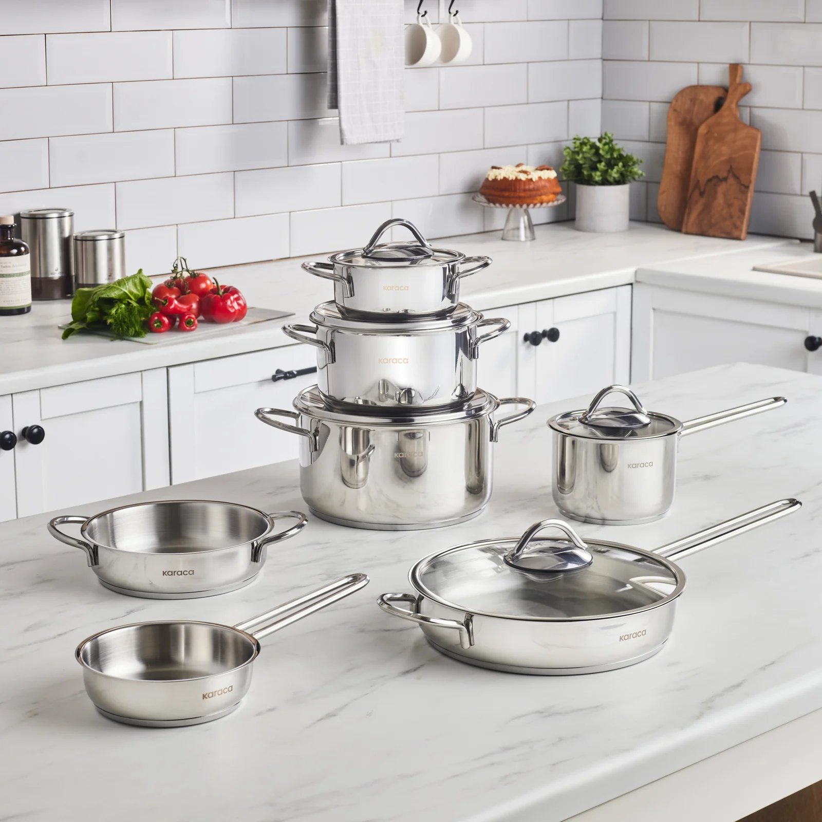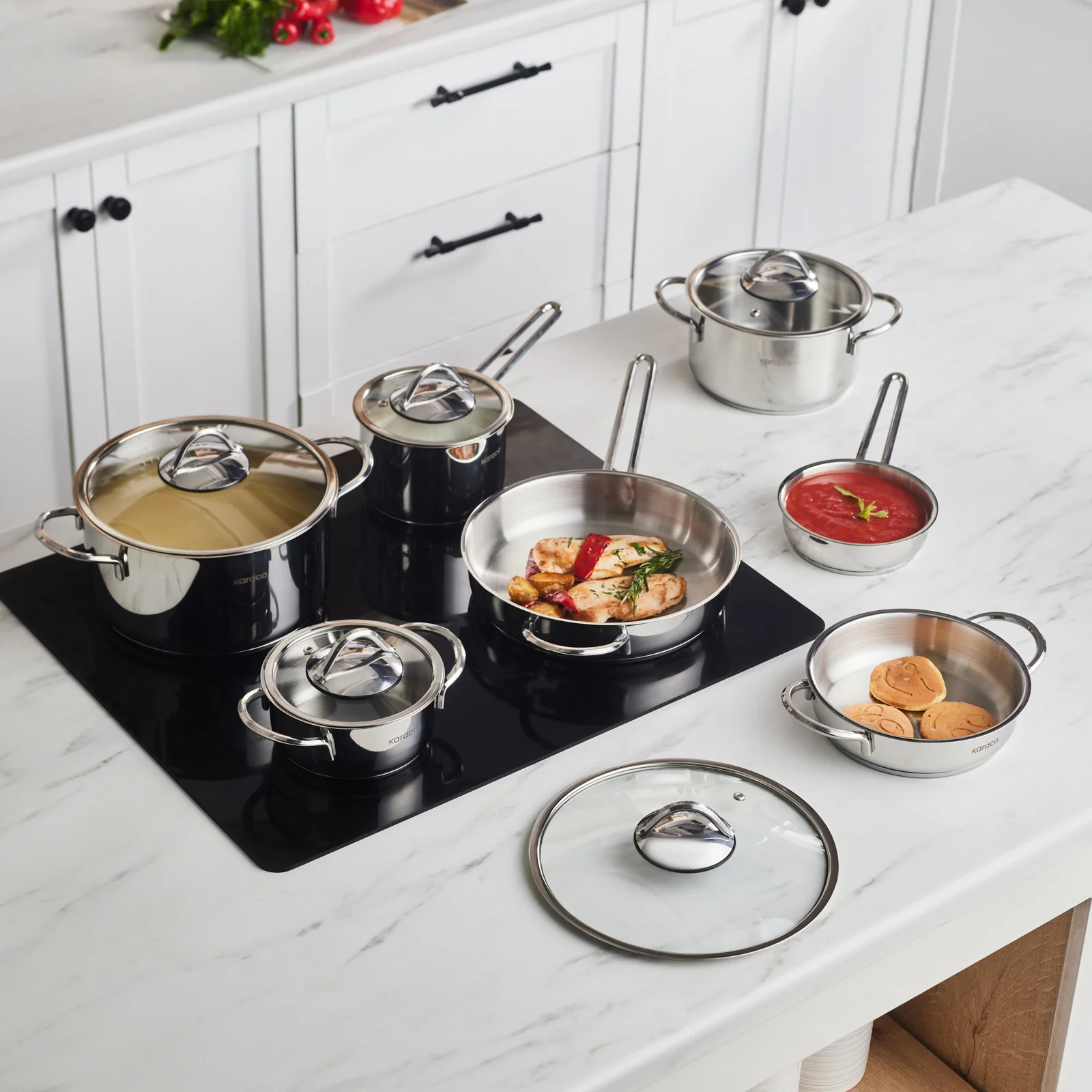 Karaca Ada, 12-teiliges Stahl-Kochgeschirr-Set