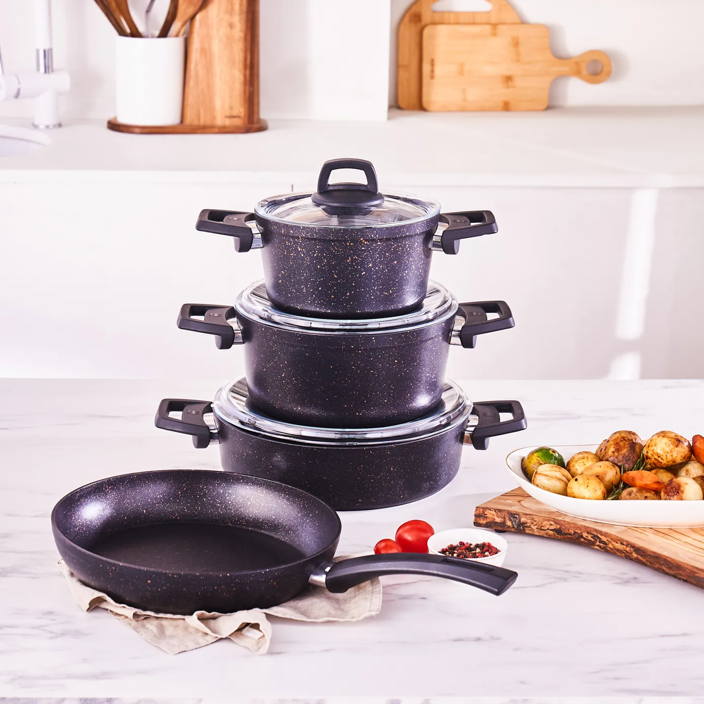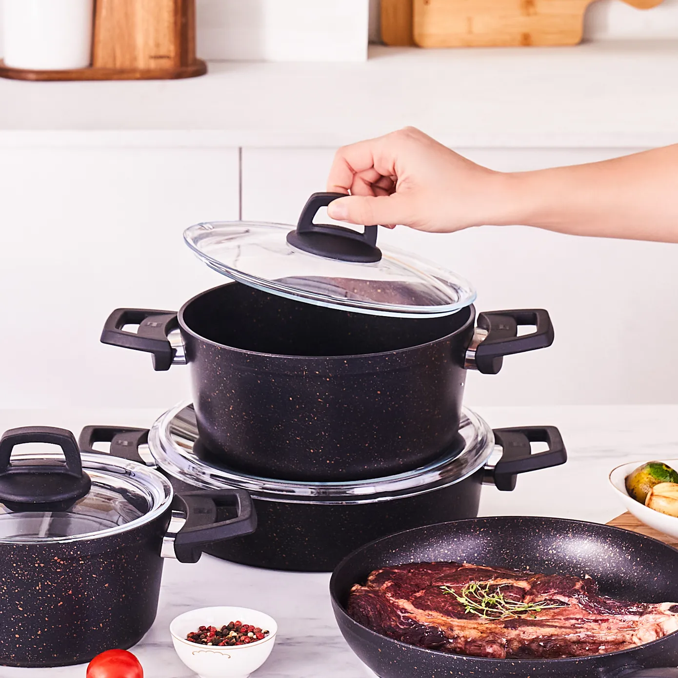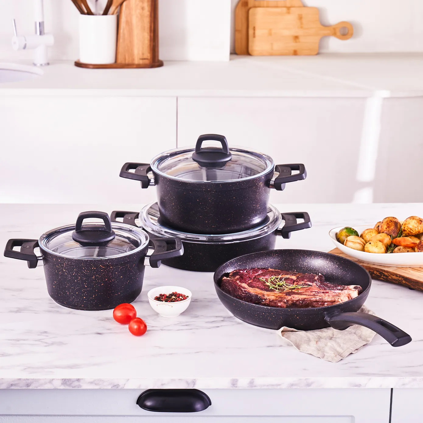 Karaca Biogranit Anna 7 Teilig Kochtopfset, Schwarz