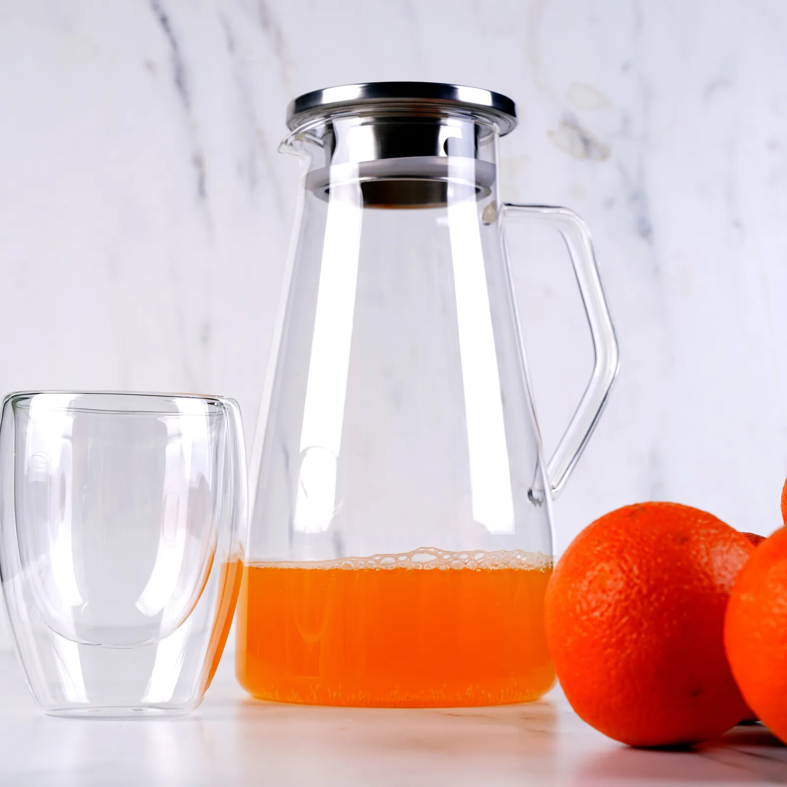 Karaca Borosilikat Wasserkrug Ausglas und Rostfreiem Stahl 1700 ml