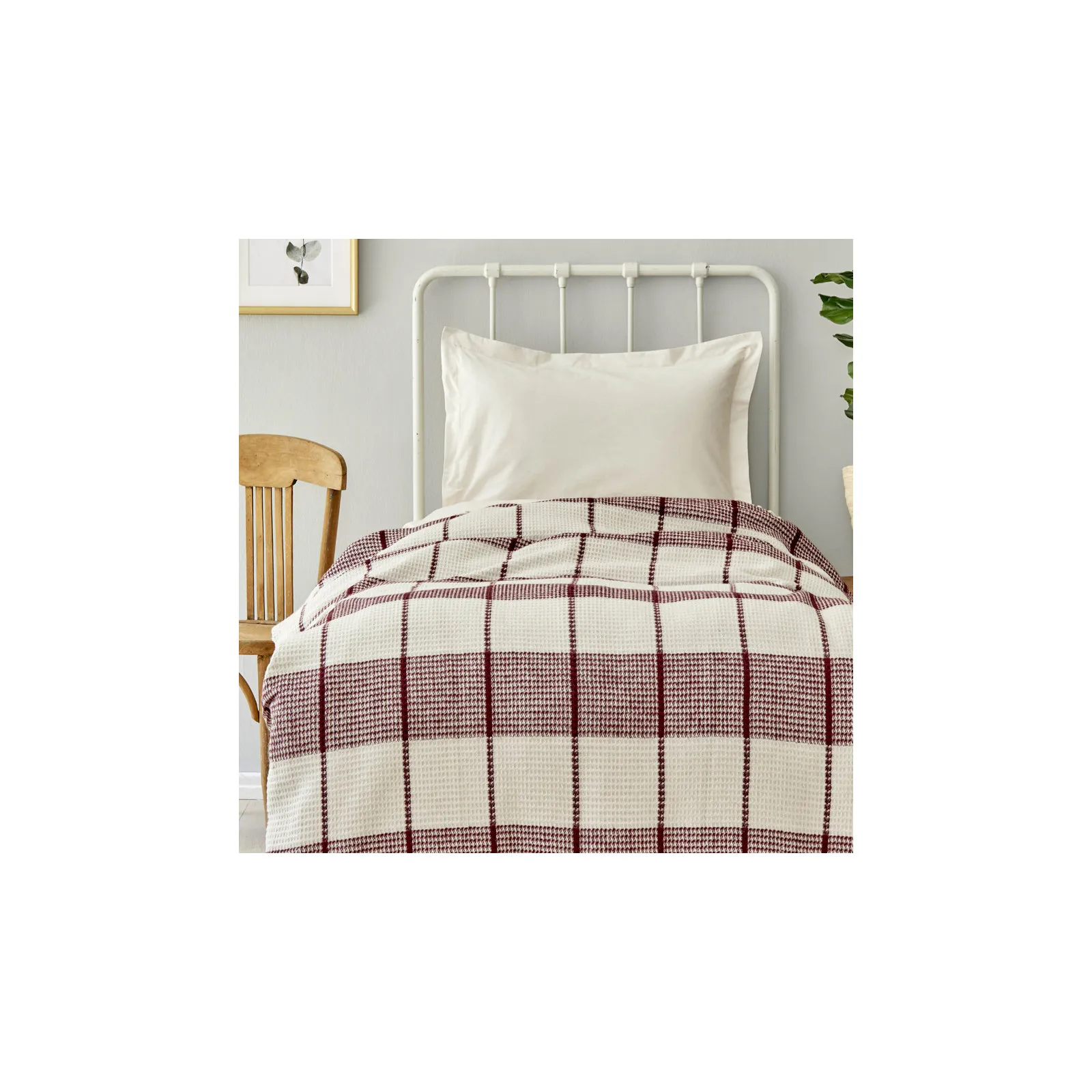 Karaca Home Carmen Burgunderrot Bettdecke für eine Person mit Waffelmuster—-