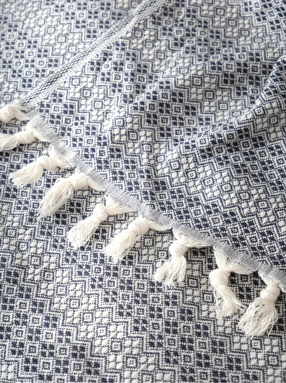 Karaca Home Destina Marineblau Bettdecke für zwei Personen, die mit ihrer marineblauen Farbe die Atmosphäre Ihres Schlafzimmers verändern wird, besticht auch durch ihre Quastendetails. Leicht zu reinigen, da sie in der Waschmaschine gewaschen werden kann. Empfohlen bei 30 Grad zu waschen.