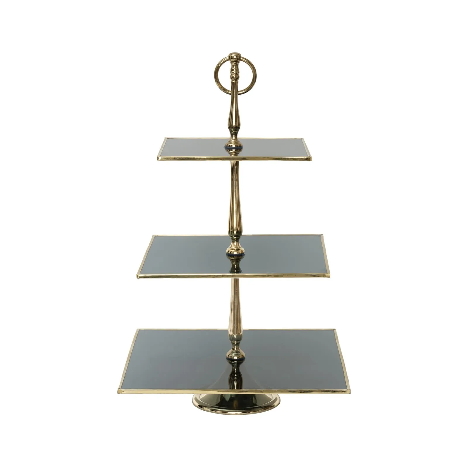 Karaca Home Line Dekorativer 3-stöckiger goldener Tortenständer 25 cm
