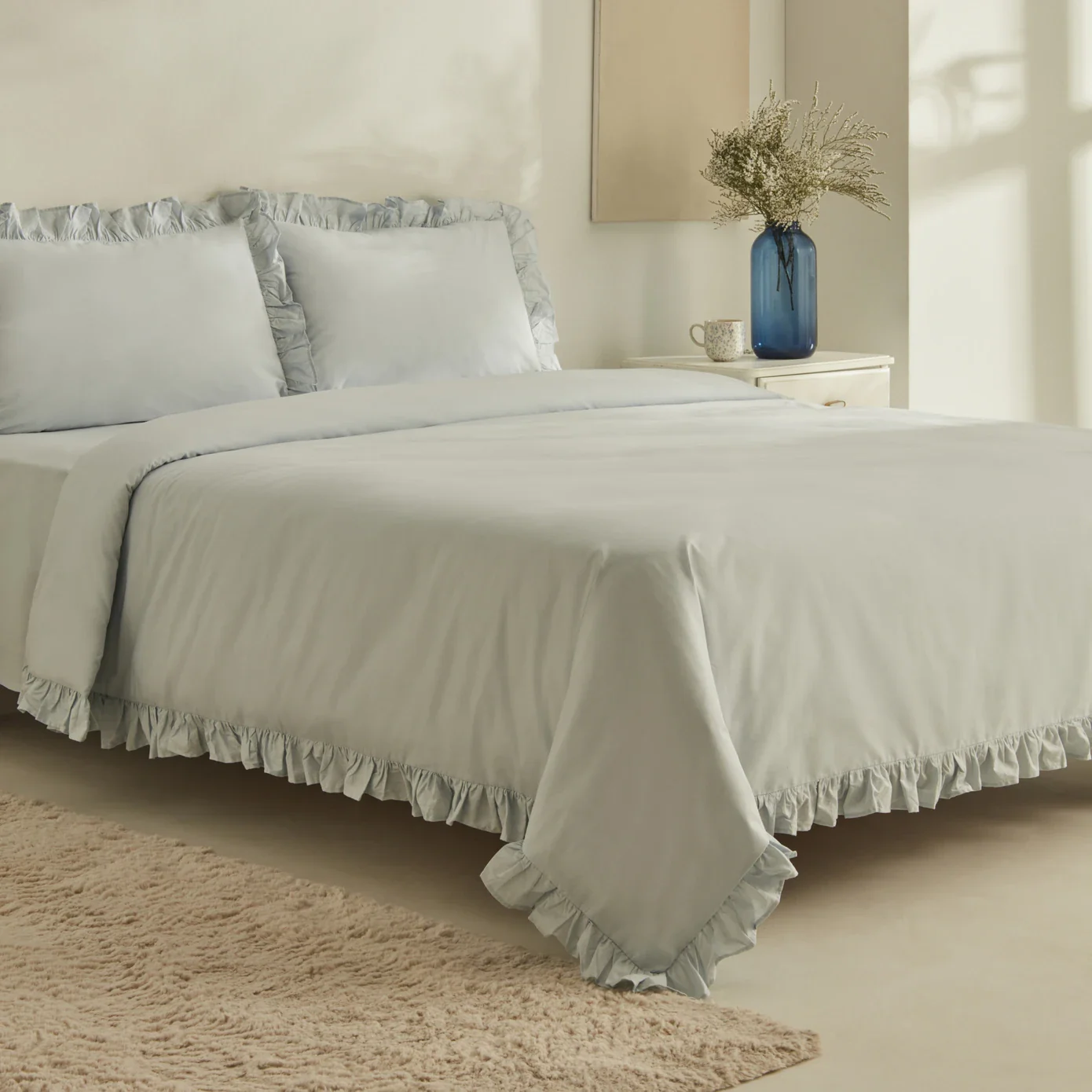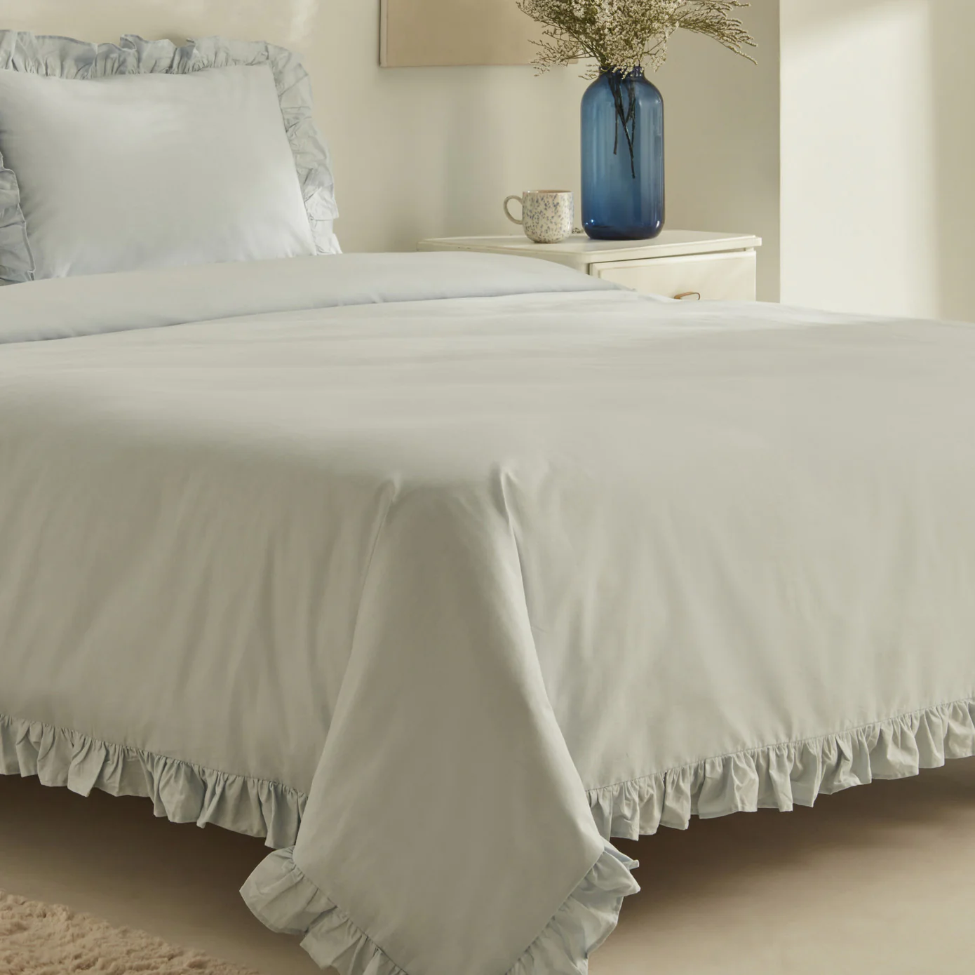Karaca Home Pure Ruffle 100% Baumwolle Doppelbett-Bettwäsche-Set Hellblau
