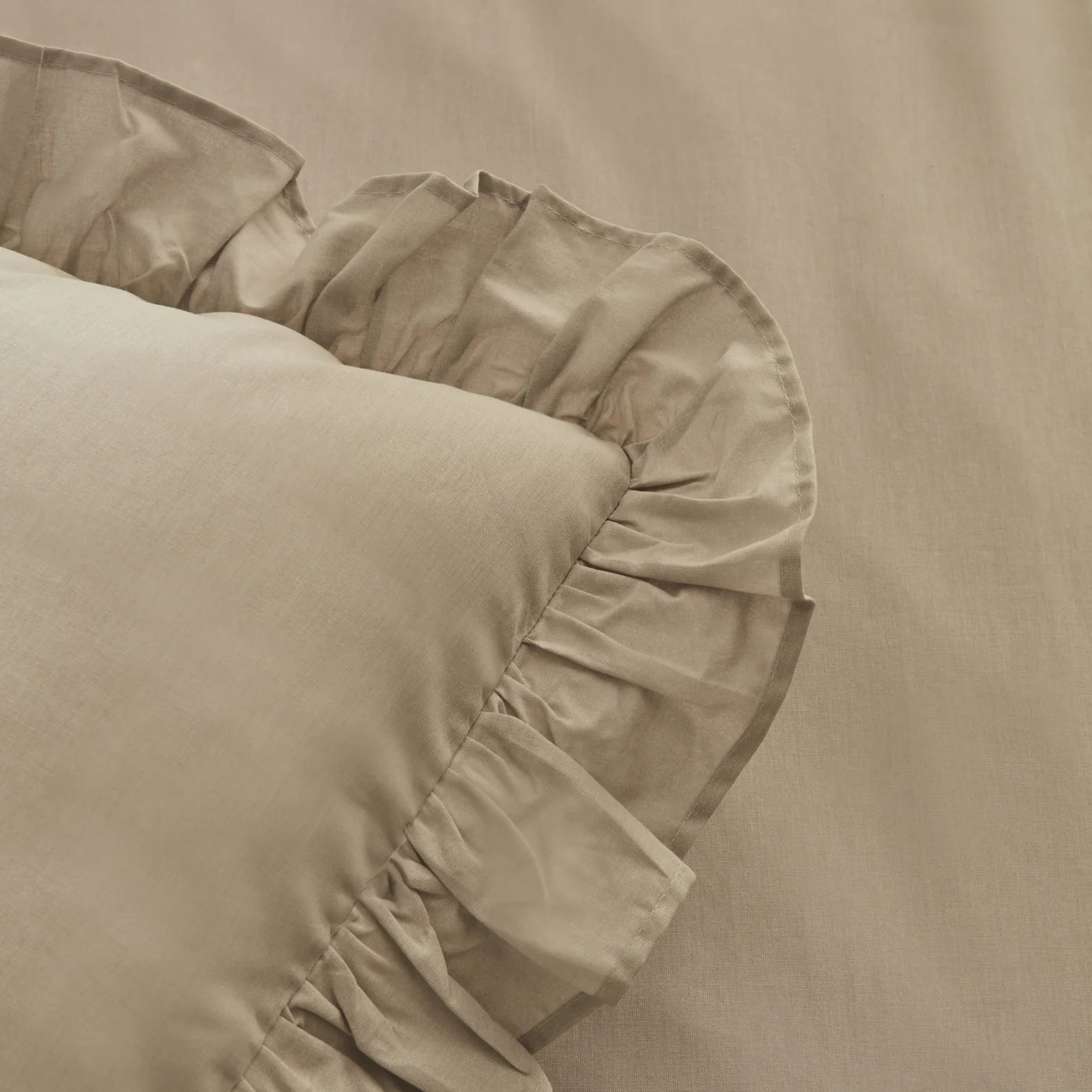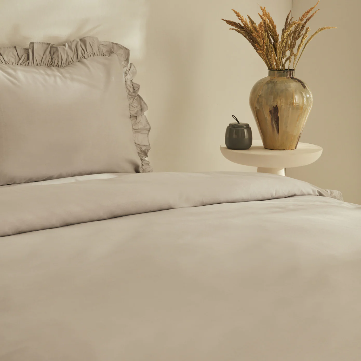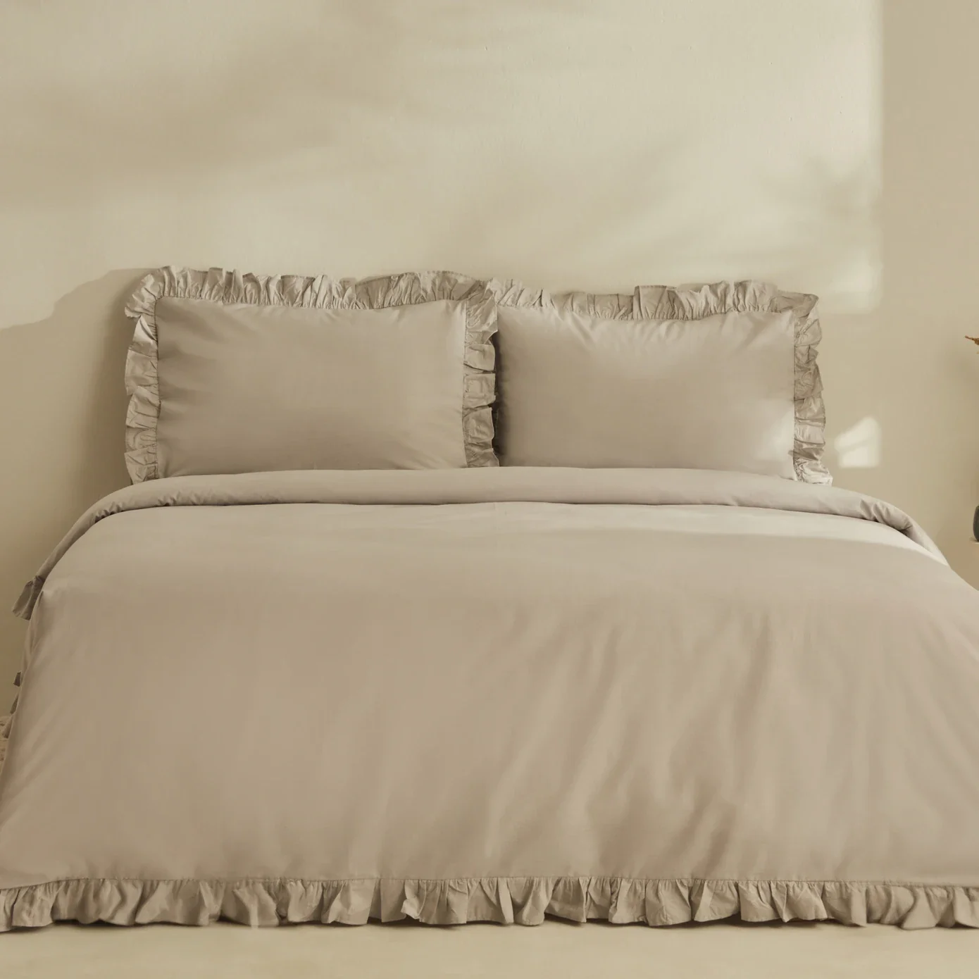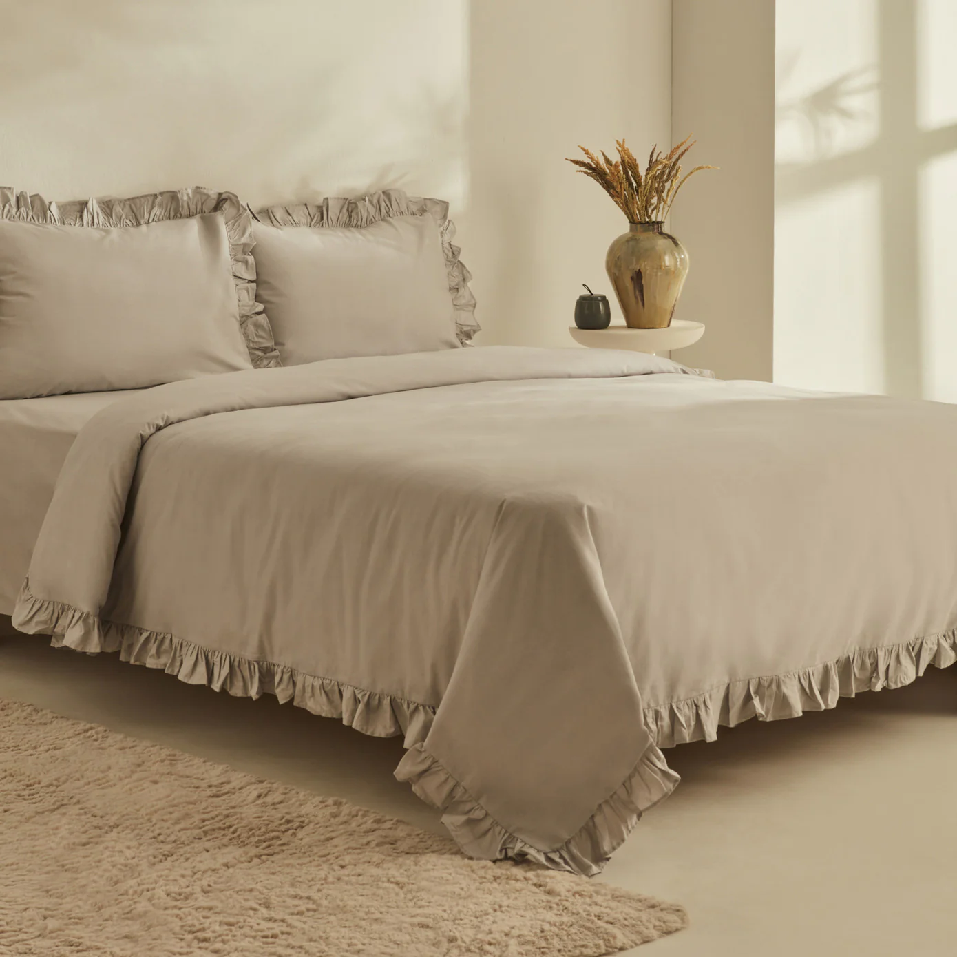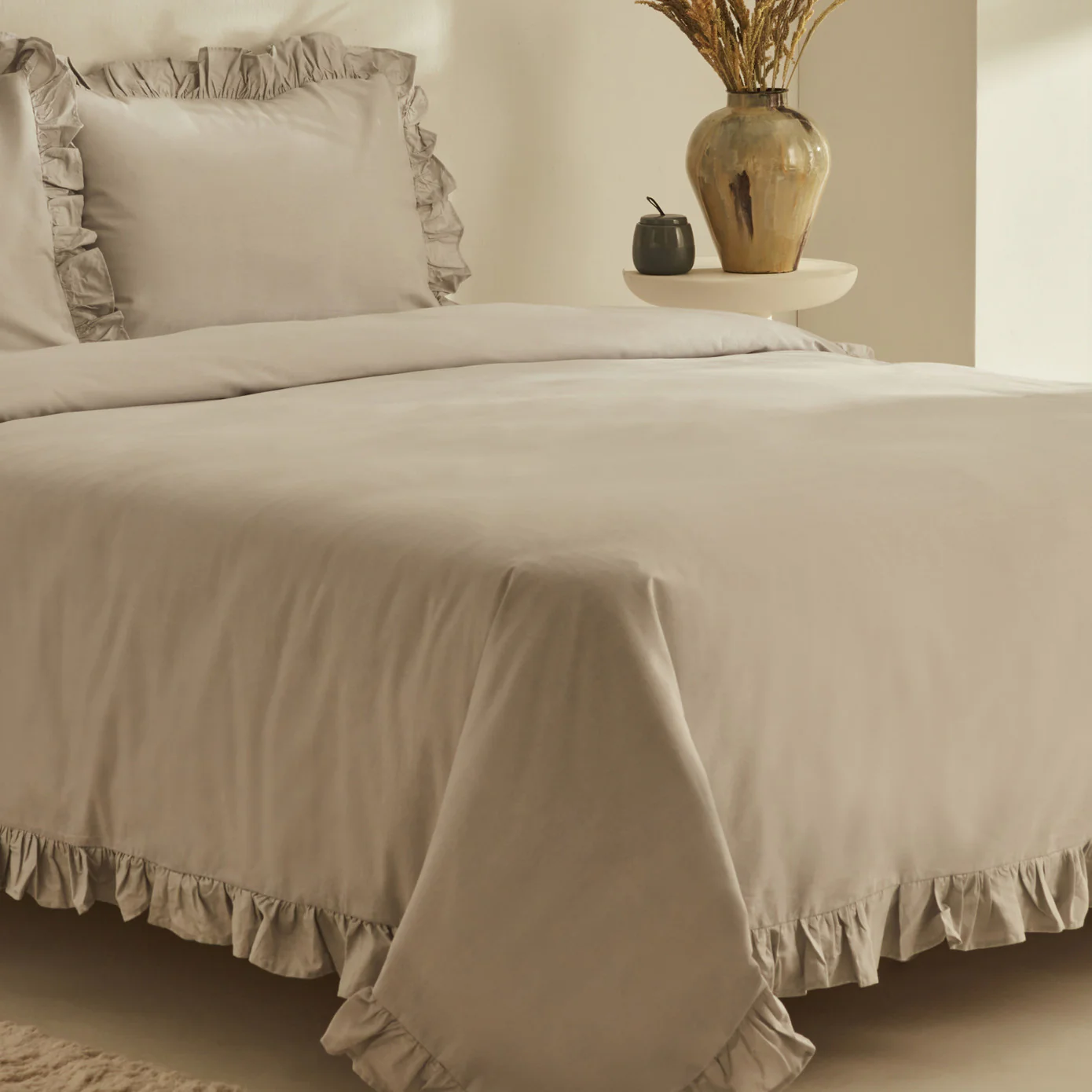 Karaca Home Pure Ruffle 100% Baumwolle Doppelbett-Bettwäsche-Set Hellgrau