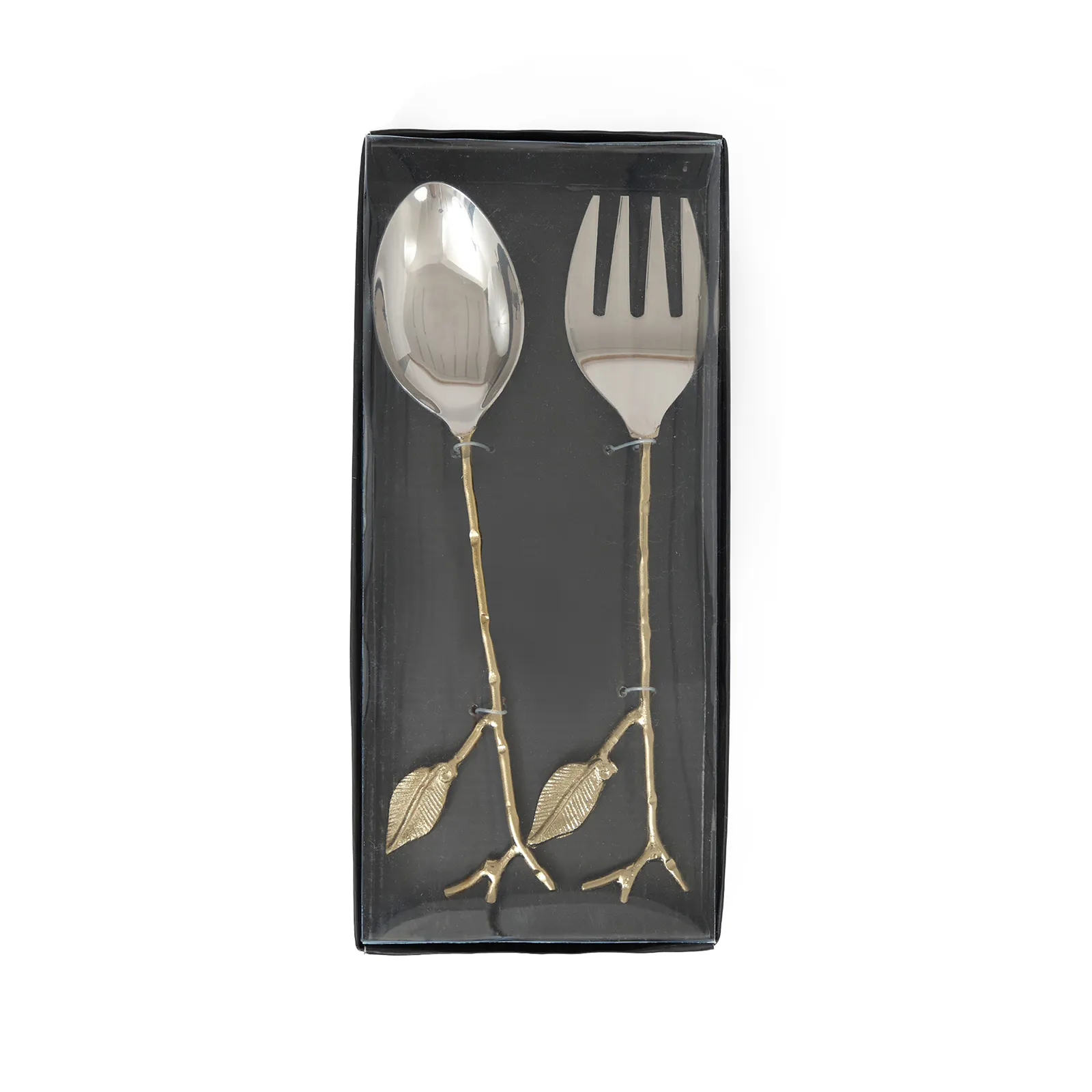 Karaca Leaf Servierlöffel und Gabel Set Gold
