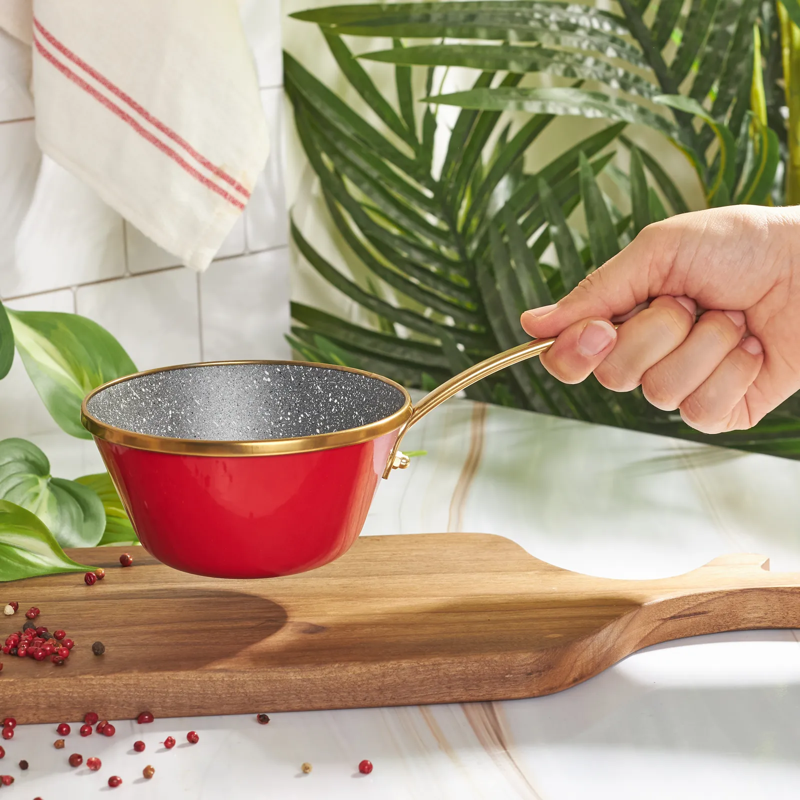 • Die Emailleprodukte von Karaca sind frei von giftigen Rohstoffen und enthalten keine schädlichen Inhaltsstoffe. Die keimfreie und leicht zu reinigende Emaille ist widerstandsfähig gegen hohe Temperaturen, chemische und klimatische Bedingungen. Sie hat eine dekorative und ästhetische Ausstrahlung. Die hygienische Oberfläche gibt weder Geruch noch Geschmack ab.