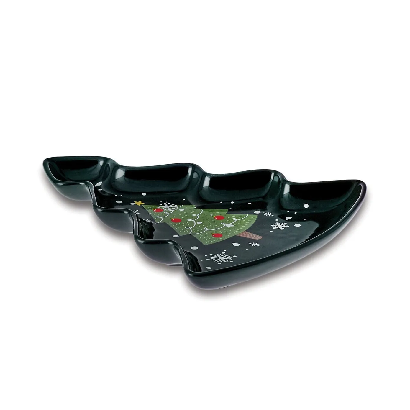 Karaca Weihnachten Porzellan Golden Linie Weihnachtsbaum Dekorativer Teller, 21 cm, Schwarz Grün
