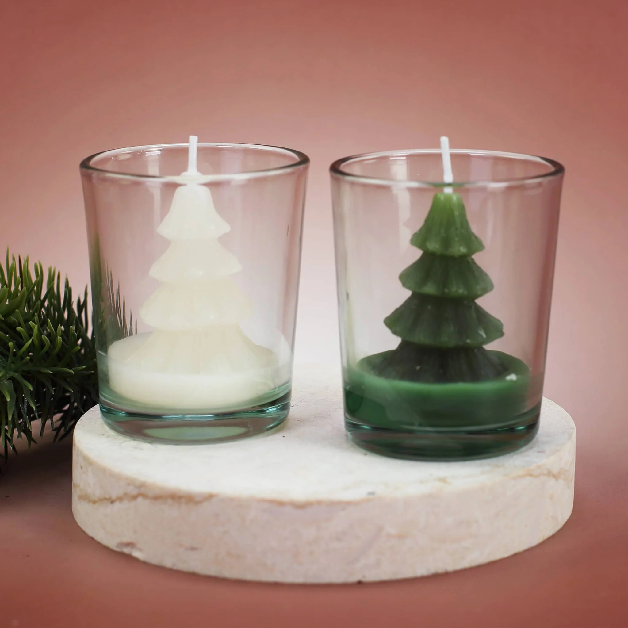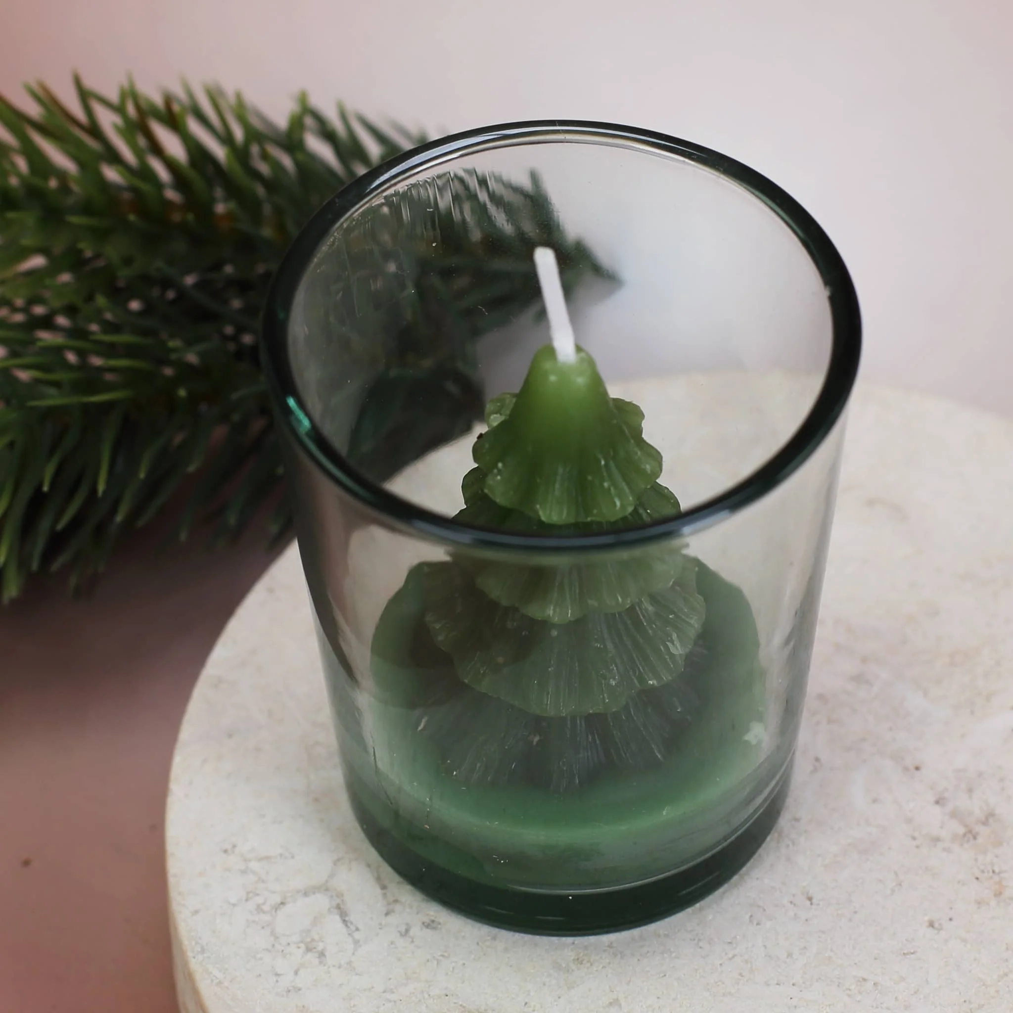 Kerze im Glas in der Form eines Weihnachtsbaums