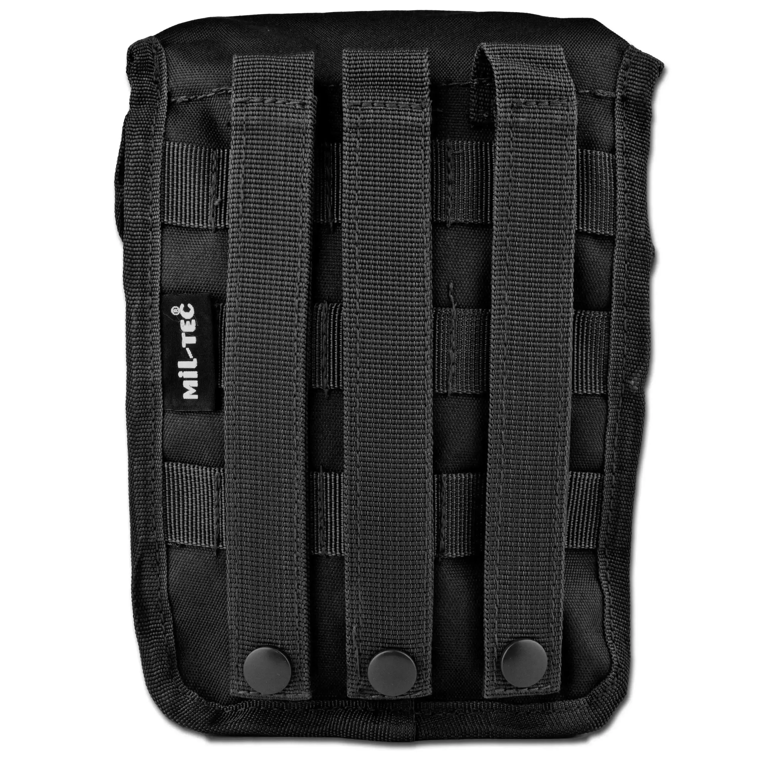 Die Mil-Tec Koppeltasche Multipurpose Large hat ein großes Fach mit einer Ablauföse, das sich durch eine Schneeschürze verschließen lässt. Außerdem besitzt die Koppeltasche einen Deckel, der mit einer Steckschnalle und einem Klettverschluss mit Geräuschtarnung versehen ist. Das MOLLE-Befestigungssystem befindet sich auf der Rückseite und bietet so die Möglichkeit weitere Ausrüstungsgegenstände zu befestigen.