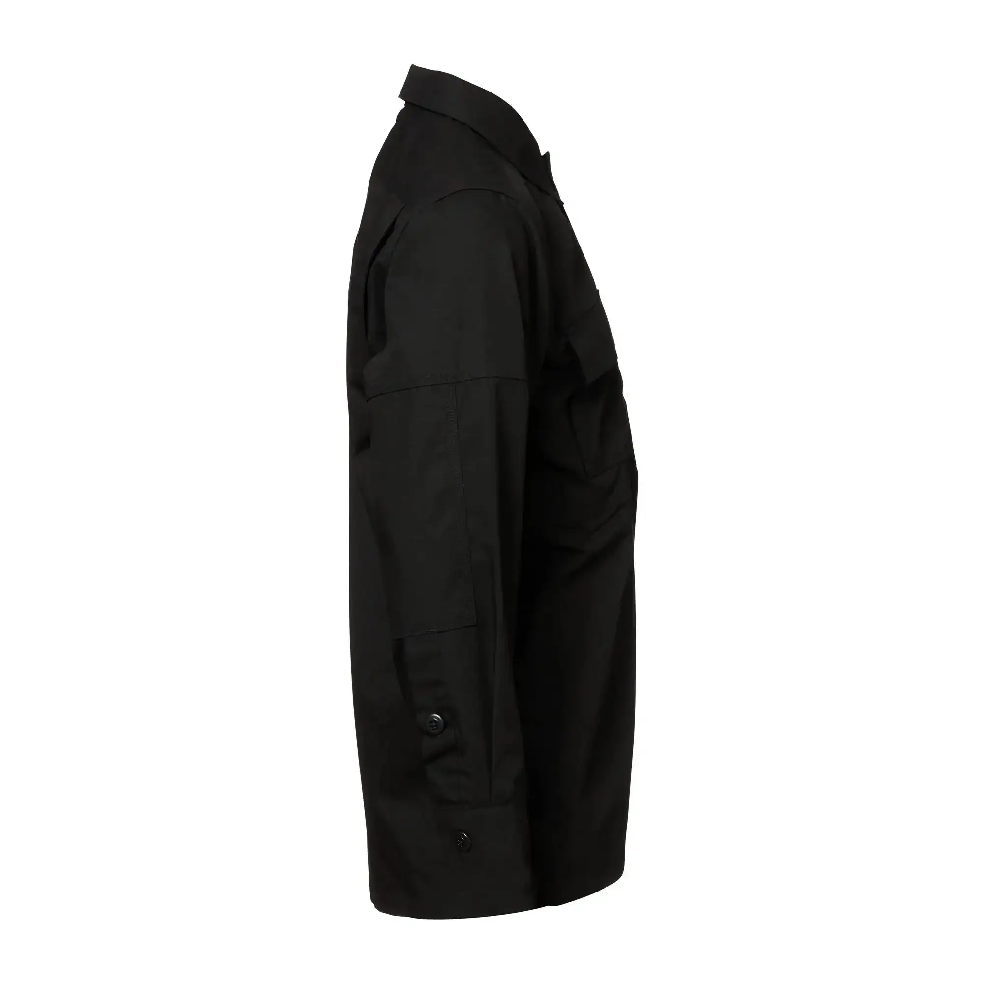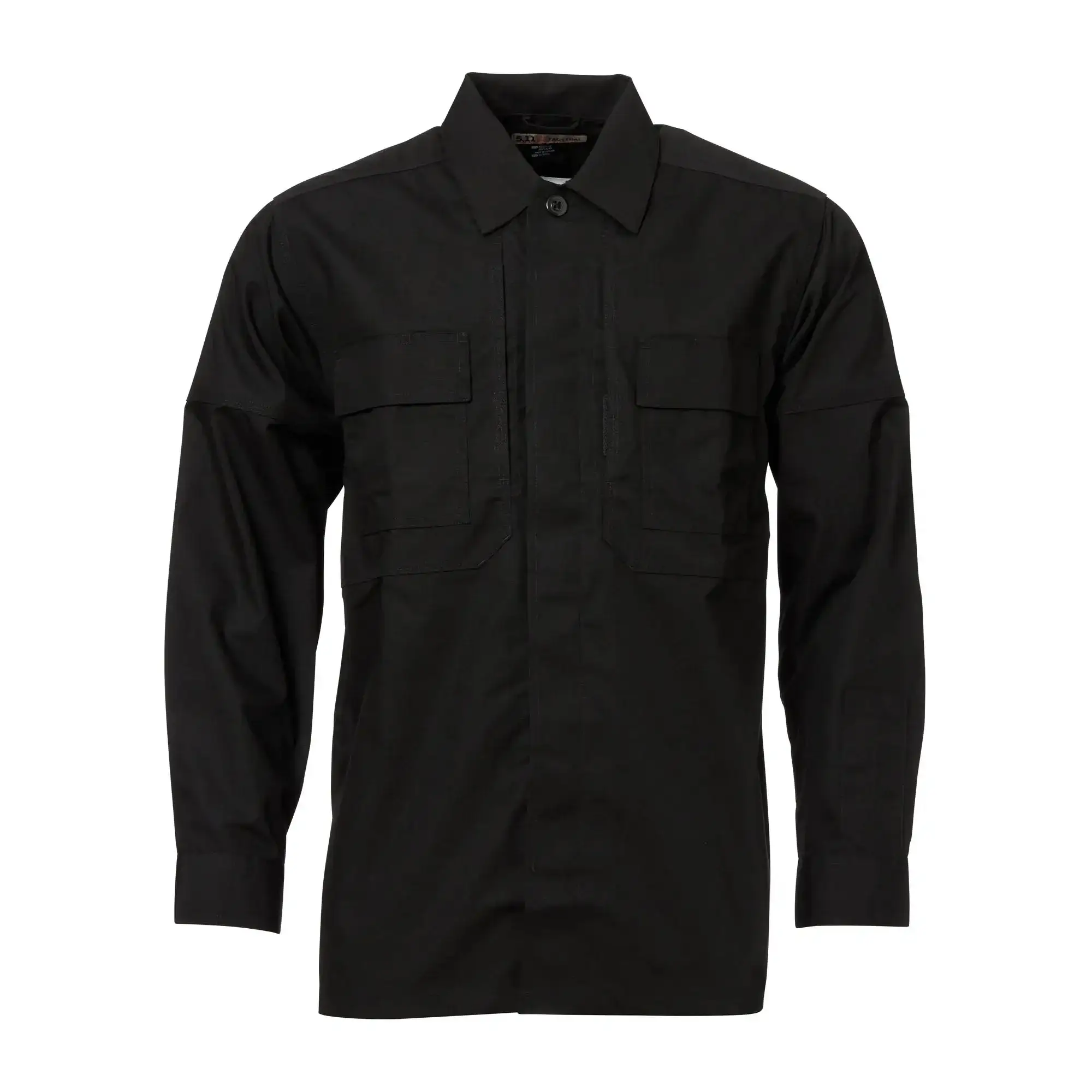Das 5.11 Langarmhemd TDU Shirt ist ideal für den Einsatz. Das Material bietet mit einer Teflonbeschichtung Schutz gegen Flecken, Schmutz und Nässe. Der gerade Schnitt sorgt ebenso wie die Dehnfalte im Schulterbereich für verbesserte Bewegungsfreiheit. In zwei verdeckten Brusttaschen mit Klettverschluss und zwei aufgesetzten Brusttaschen mit Patten und Klettverschluss kannst Du Dokumente ebenso wie kleine Ausrüstung wie Taschenmesser unterbringen. Zwei Stiftköcher am unteren linken Ärmel runden die Verstaumöglichkeiten ab. Eine geknöpfte Frontleiste mit unverwüstlichen Melaminknöpfe und mit breiter Abdeckung schützen Dich vor Wind. Die verstärkten Ellbogen haben ein Fach, in dem Du Schützer einfügen kannst.