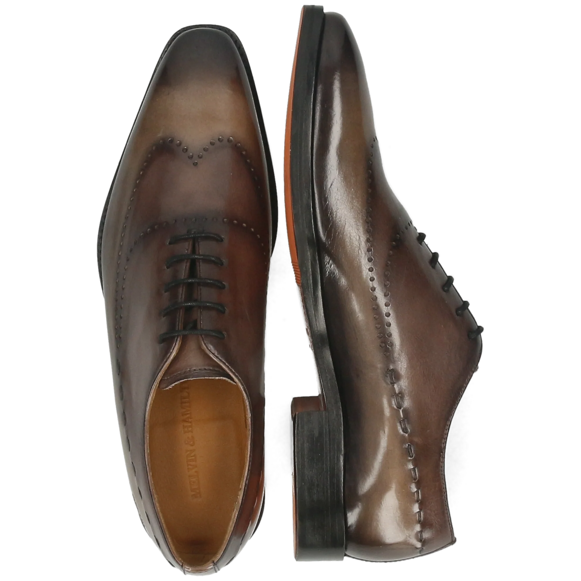 Lass Dich von der Herbst-Winter-Kollektion der Oxfordschuhe aus Leder für Herren von Melvin & Hamilton verzaubern. Dieser Schuhtyp zeichnet sich durch sein geschlossenes Schnürsystem aus, das ihm einen so feinen und eleganten Look verleiht. Mit diesen Oxfordschuhen Lawrence 1 triffst du die Wahl der Qualität! Wer sagt, dass Oxfordschuhe ernst und langweilig sein müssen? Gerade in der grauen Winterzeit ist es wichtig, ein bisschen Farbe zu zeigen – mit diesen originellen Oxfordschuhen Lawrence 1 aus Leder in Grau mit Sohlen aus Leder & Gummi in orange!