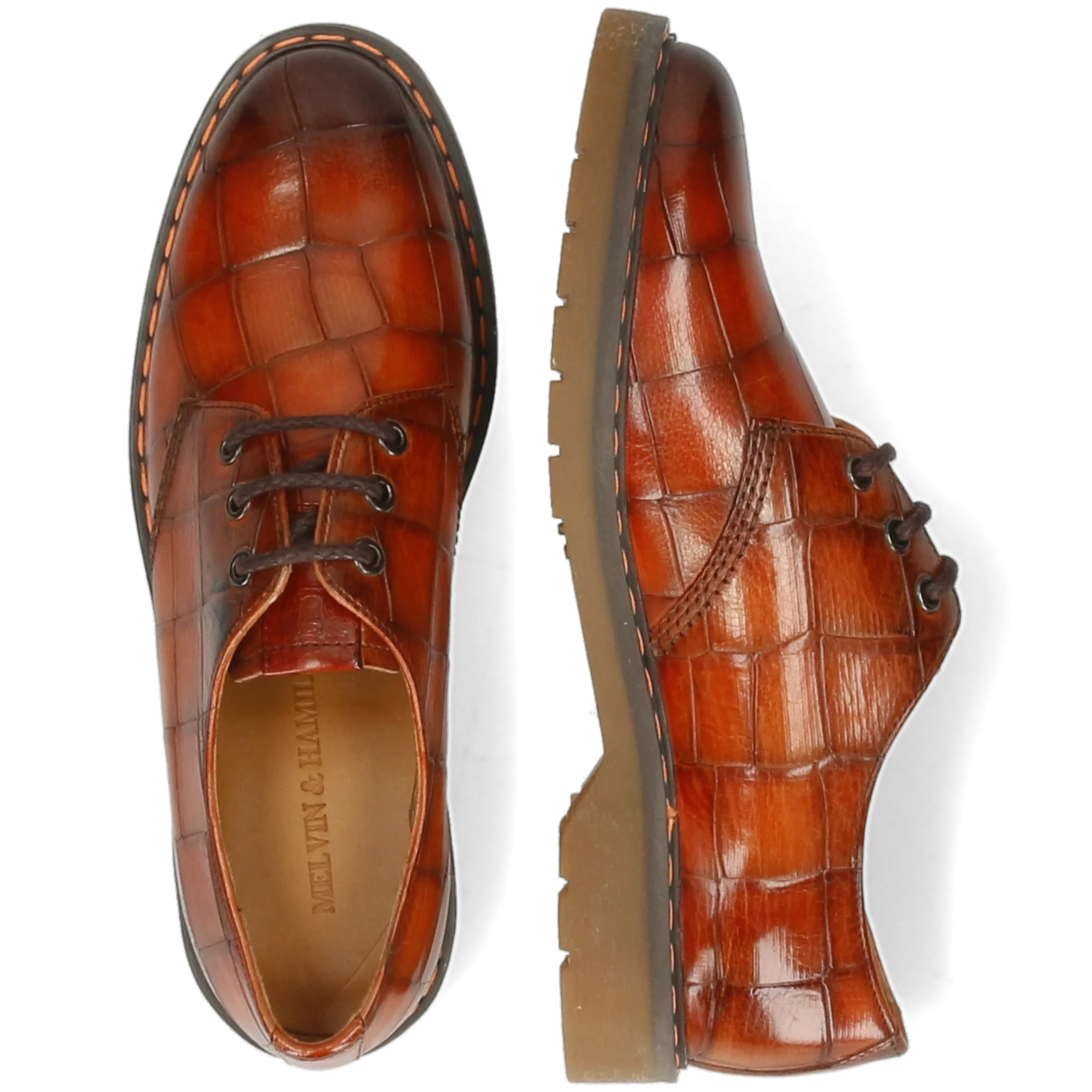 Melvin & Hamilton präsentiert seine Frühjahrs- und Sommer-Kollektion von Derbyschuhen für Damen. Klassisch geformte Schnürschuhe passen zu allen Kleidungsstilen und sind im Frühling und Sommer ein Muss in Deinem Kleiderschrank, wenn Du den Komfort eines geschlossenen Schuhs suchst. Entdecke unseren Derby Megan 2TM aus Leder, seinen Charakter und wie man ihn trägt. Mit diesen Schnürschuhen in orange liegst du voll im Trend! Wer wagt, der gewinnt: aufregende Farben oder wilde Prints – mit unseren Derbyschuhen bist Du der Hingucker!