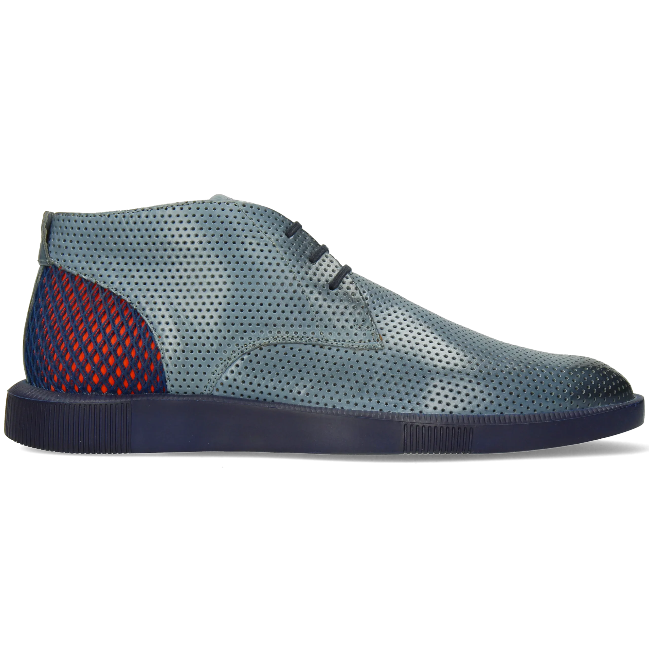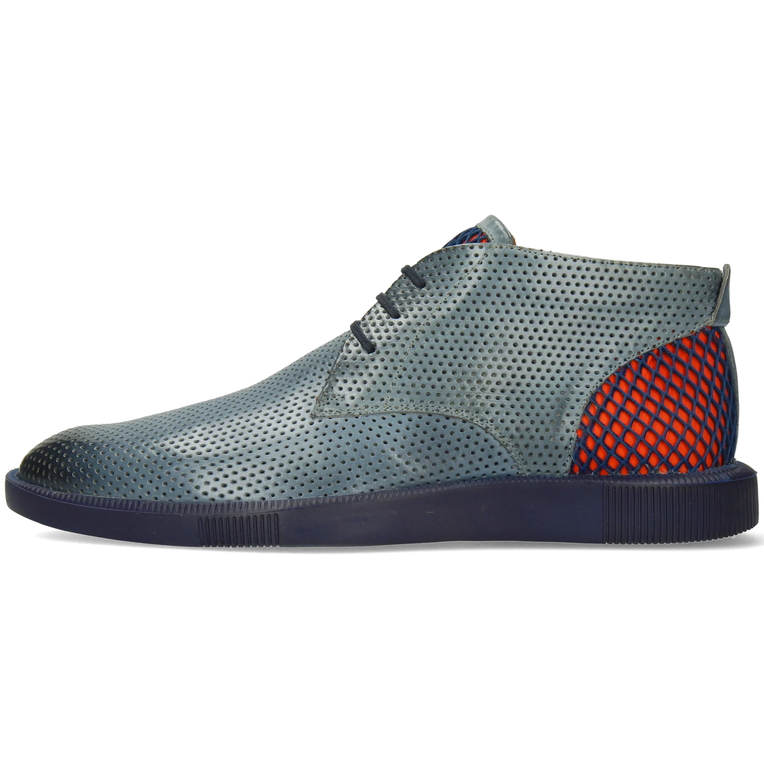 Entdecke die Frühjahrs- und Sommerkollektion stylischer Herren Stiefeletten aus dem Hause Melvin & Hamilton. Wir stecken unser gesamtes Know-How in die Lederverarbeitung, das Design und die Herstellung außergewöhnlicher Stiefeletten, unseren absoluten Must-Haves – auch in der warmen Jahreszeit! Mit dem Modell Newton 2 entscheidest Du Dich für einen einzigartigen Look! Mit diesen Lederstiefeletten in blau hinterlässt Du überall einen bleibenden Eindruck! Gerade im Frühjahr und Sommer lieben wir es unsere Outfits mit knalligen Farben, trendigen Mustern und tollen Designs abzurunden! Trage die Stiefeletten zum Beispiel zu lässigen Jeans und verleihe Deinem Outfit einen extravaganten Touch!