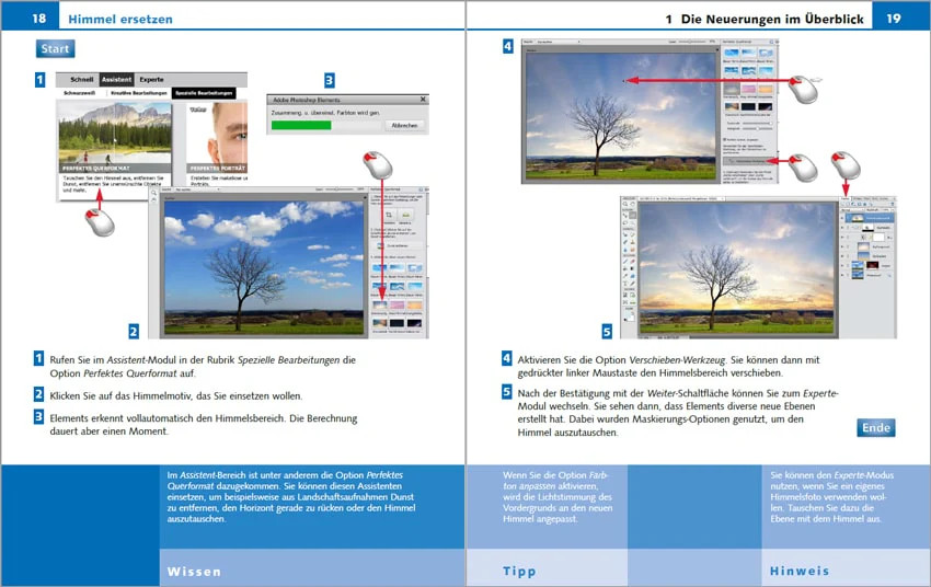 Es macht Sie in reich bebilderten Schrittanleitungen mit dem großen Funktionsumfang von Photoshop Elements vertraut: von der schnellen Farbkorrektur über komplexe Retuschen bis zum Gestalten kreativer Collagen.