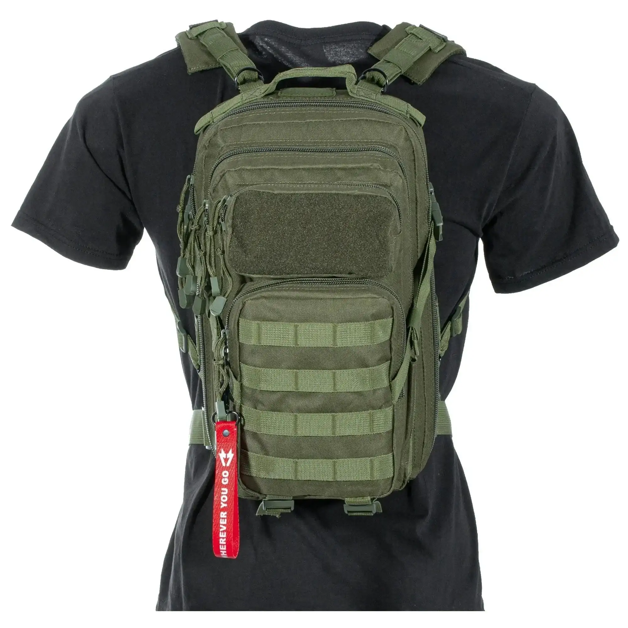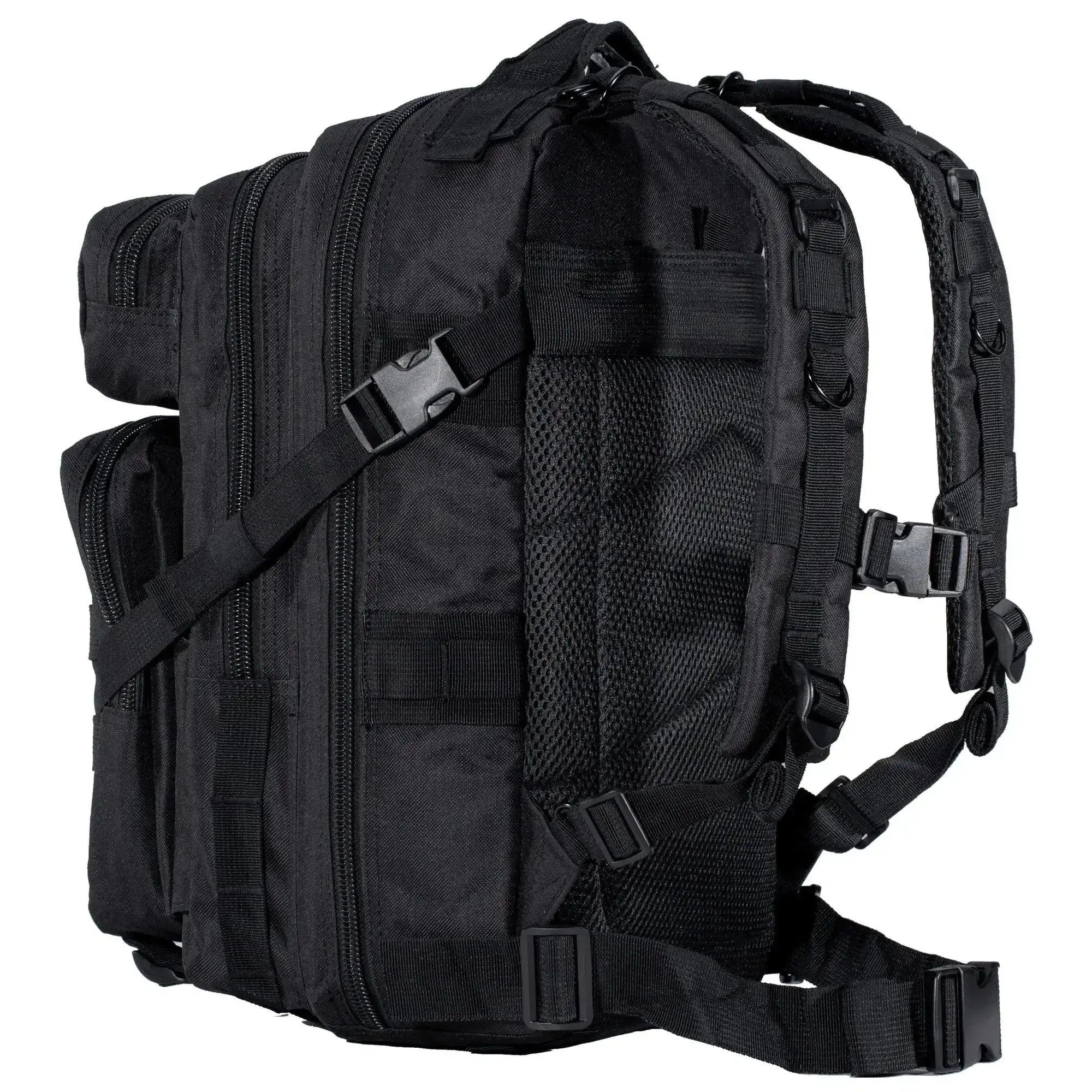 Die verstellbaren Schultergurte können sowohl unten als auch oben eingestellt werden, um den Rucksack auch über Plattenträger verwenden zu können. Die Kompressionsriemen sorgen für eine bessere Ladungssicherung und ermöglichen Dir, Deine Jacke, Decke oder Matte zu verstauen. Mit den Molle-Schlaufen lässt sich der Rucksack modular erweitern, um noch mehr transportieren zu können.
