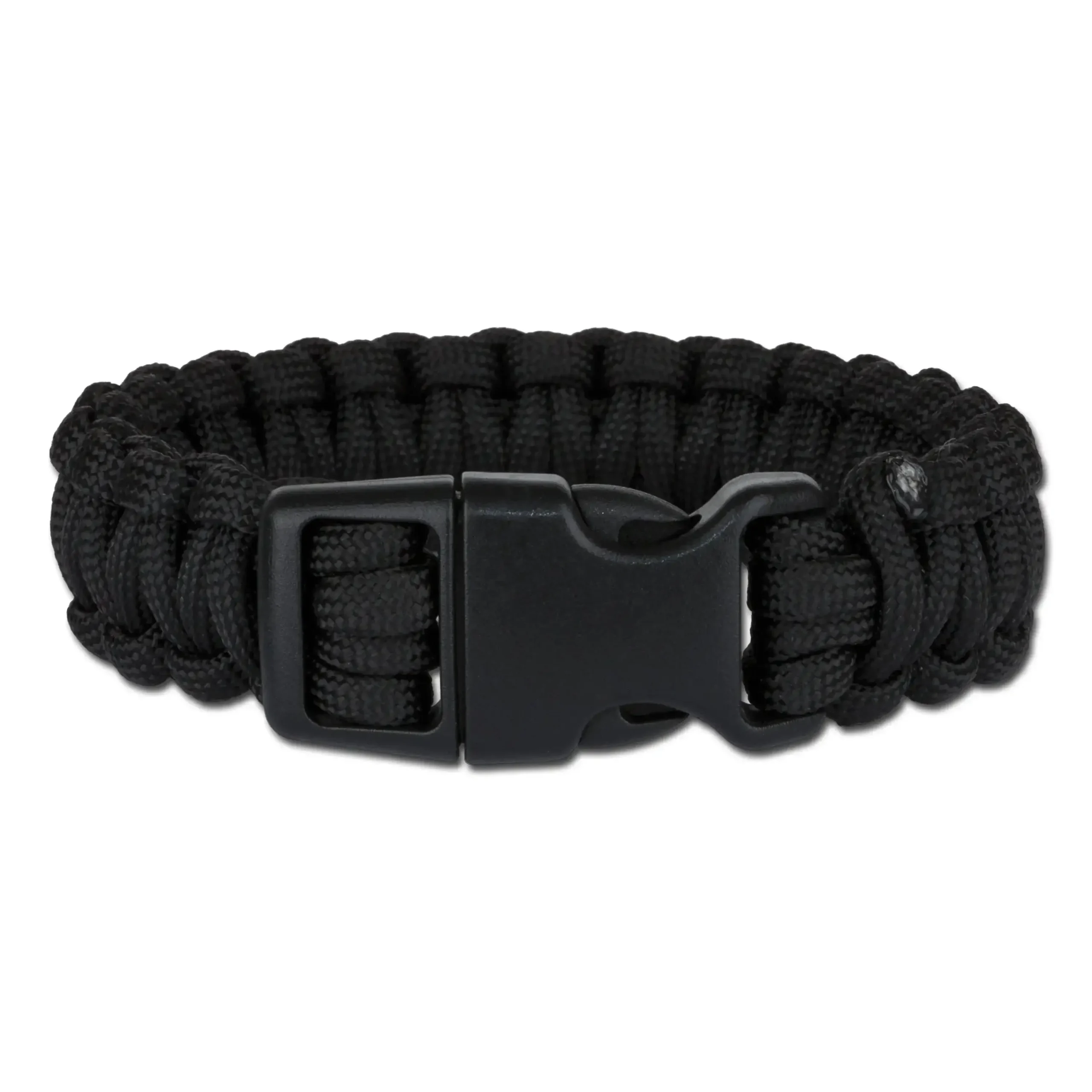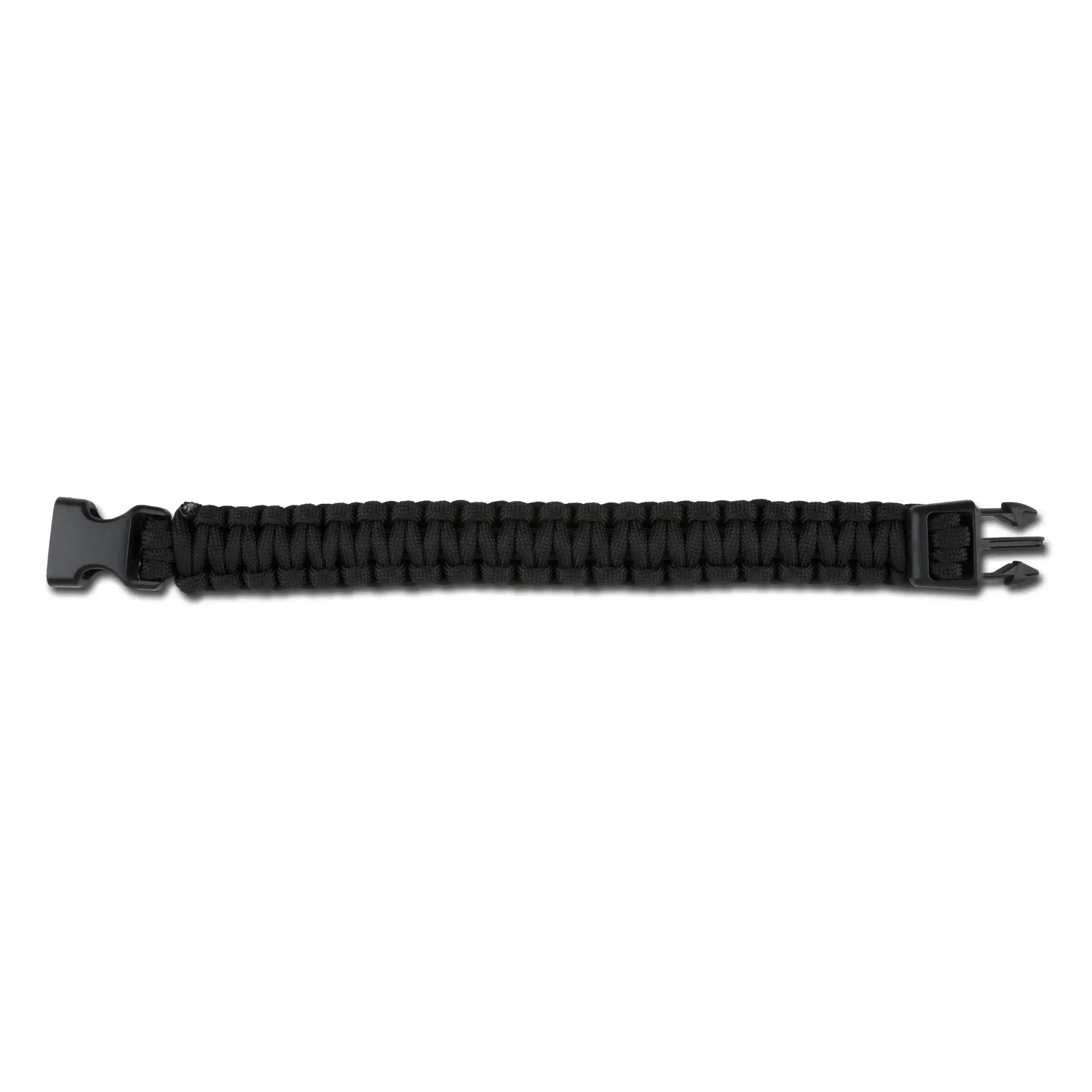 Das Survival Fallschirmleinen-Armband breit ist gefertigt aus geflochtener Fallschirmleine und mit einem Clipverschluss ausgestattet. Das Seil lässt sich im Notfall aufdröseln und ergibt dann ein reißfestes Seil.
