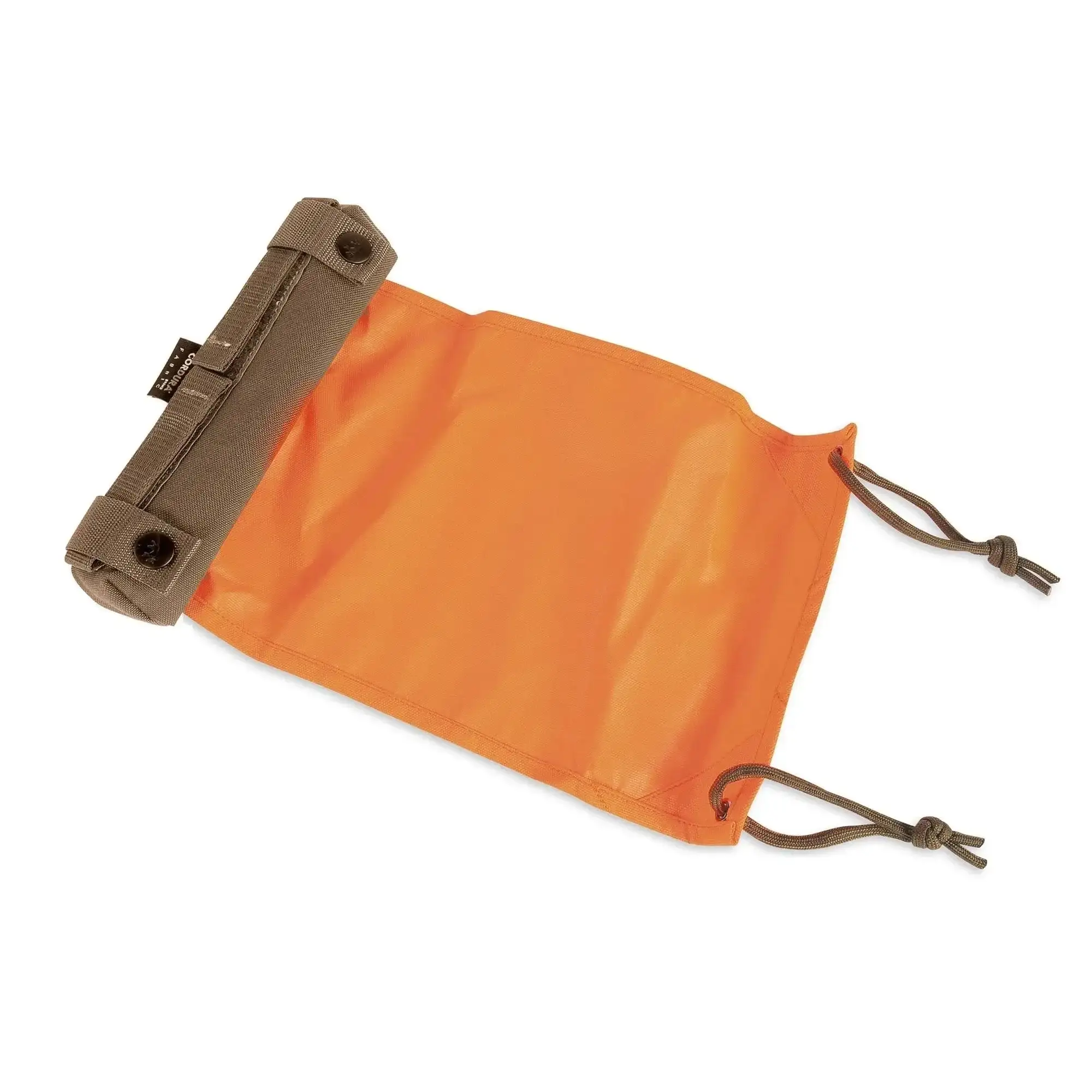 Tasche mit ausrollbarer Stoffflagge in Farbe warn-orange.