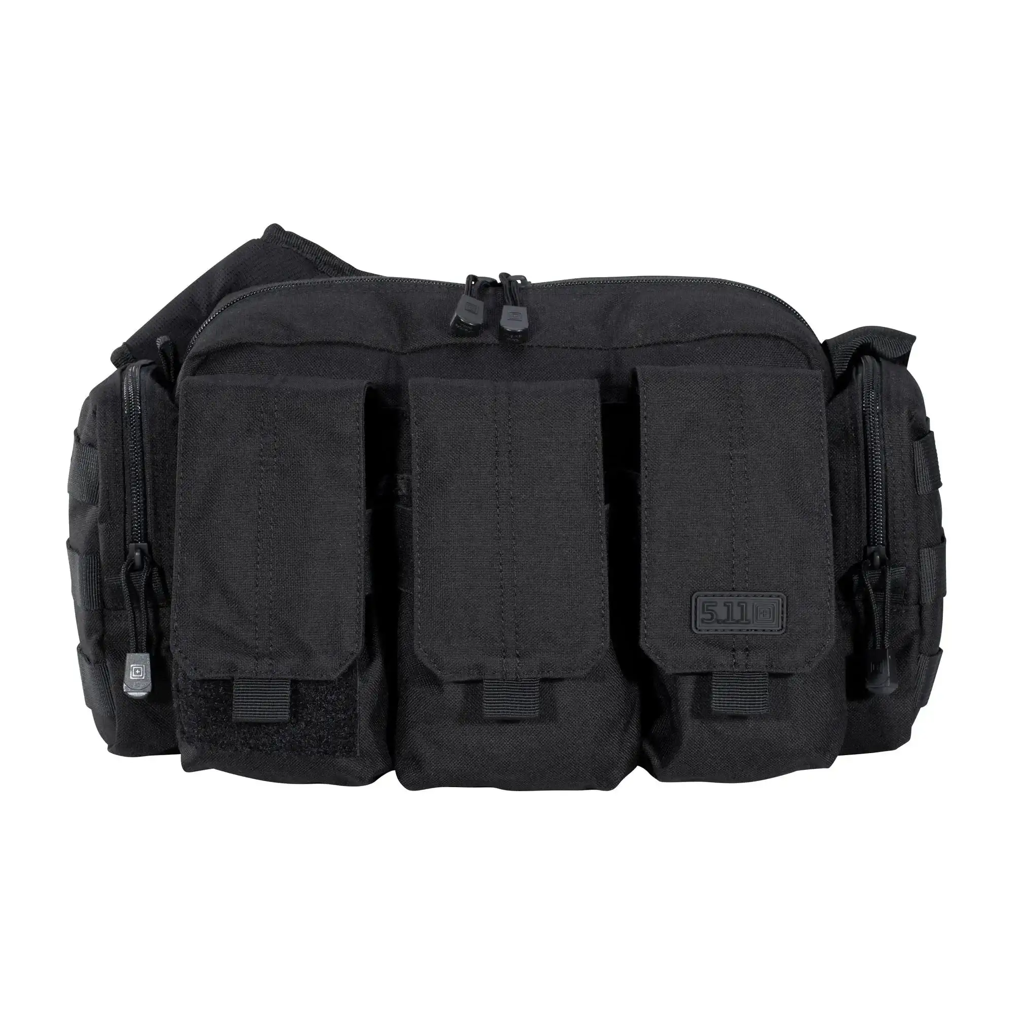 Die 5.11 Tasche Bail Out Bag ist eine Umhängetasche speziell für Sportschützen und Active Shooter Response Teams. Das gepolsterte Hauptfach ist zum schnellen Zugriff nicht nur mit einem 2-Wege-Reißverschluss ausgestattet, sondern hat im Innenraum Flauschmaterial zur Aufnahme von Klettausrüstung. Zusätzlich findest Du hier und an den beiden Reißverschluss-Außentaschen drei Reihen mit Molle-Systemen. Zudem befinden sich auf der Vorderseite drei Magazintaschen, die Platz für sechs Magazine bieten. Aufgrund des verstellbaren Tragegurts mit Schnellverschluss und der Rückseite mit Aero Mesh-Polsterung kannst Du die Bail Out Bag bequem tragen.