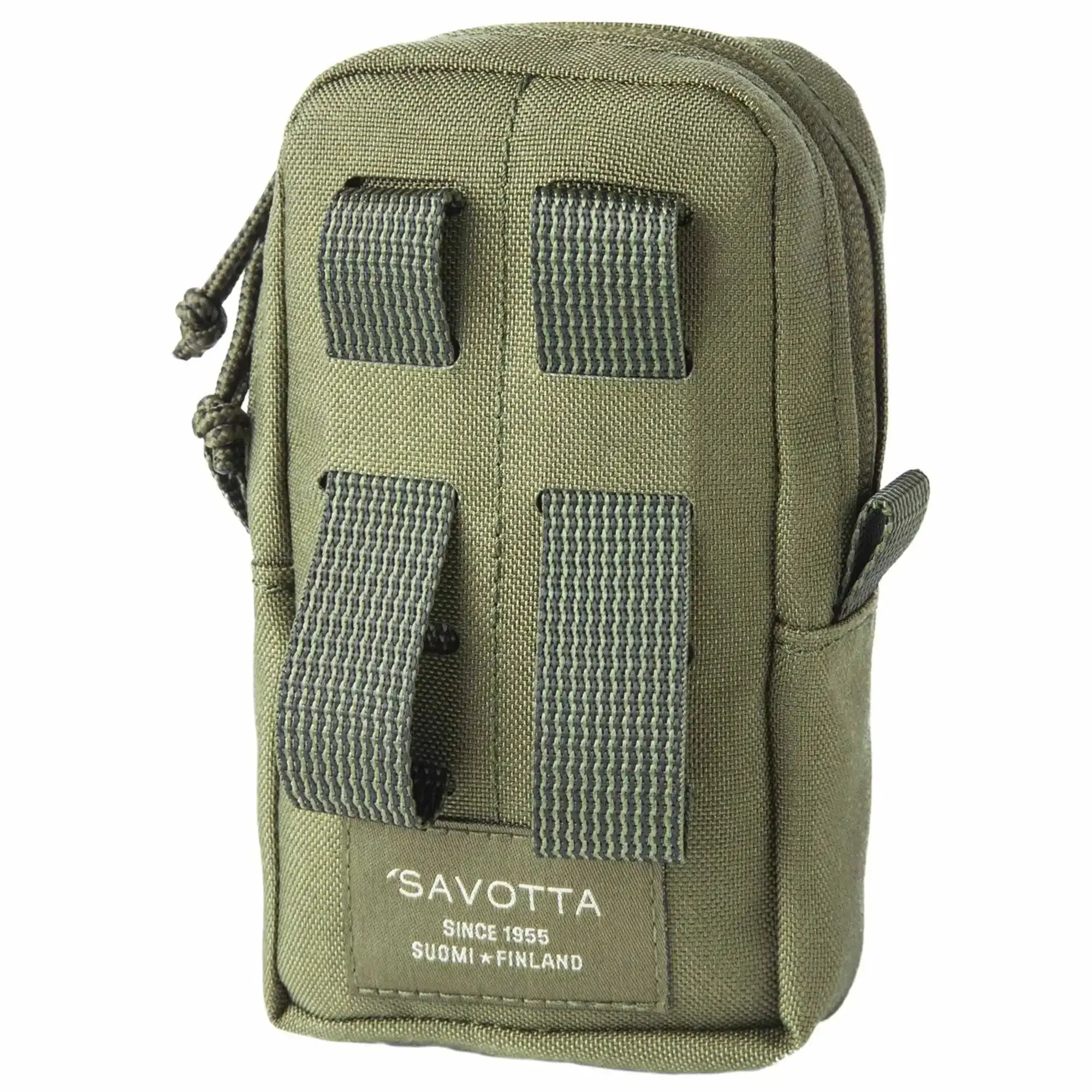 Die kompakte Savotta Tasche Utility MPP Pouch S ist aus stabilem, PU beschichtetem Cordura-Stoff gefertigt. Bei ihrem Design wurde auf das bewährte Lasercut-Verfahren gesetzt, was sie leichter und moderner macht und das Anbringen weiterer Ausrüstung ermöglicht. Befestigt wird sie mittels der zwei 24 cm langen Molle-Schlaufen auf der Rückseite. Auf der Vorderseite ist eine große Klettfläche vernäht, auf der Patches angebracht werden können. Verschließen lässt sich die Tasche durch die beiden YKK-Reißverschlüsse.