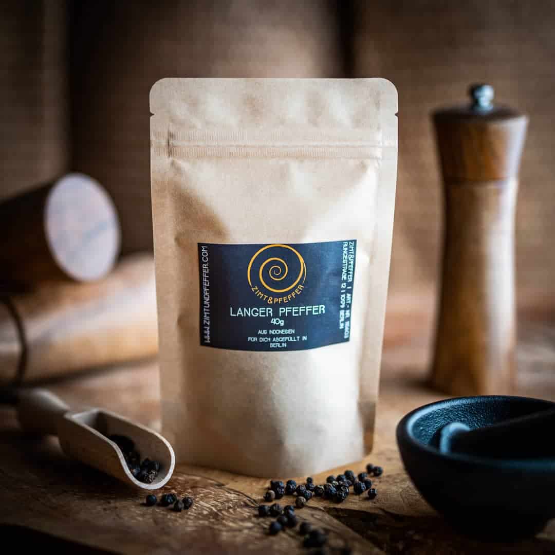 Der Lange Pfeffer (Piper longum) aus Indonesien ist eine seltene Gewürzrarität mit unverwechselbarem Charakter. Sein pikant-nussiges Aroma vereint sich mit einer komplexen Schärfe – irgendwo zwischen Chili und Piment. Mit einem besonders hohen Anteil an Piperin übertrifft er sogar klassischen Schwarzen Pfeffer und wird seit Jahrhunderten in der ayurvedischen Küche geschätzt.