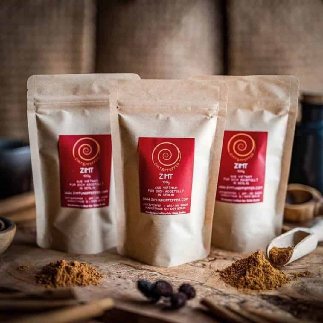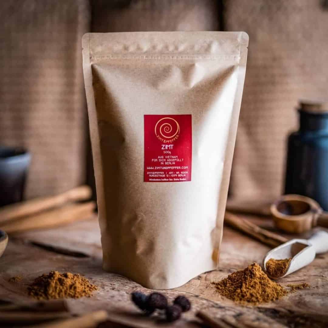 Wähle zwischen 40 g oder 100 g im Glas oder 40 g, 100 g oder 500 g im nachhaltigen Nachfüllpack – jetzt Zimt Pulver kaufen und die aromatische Vielfalt Vietnams entdecken!